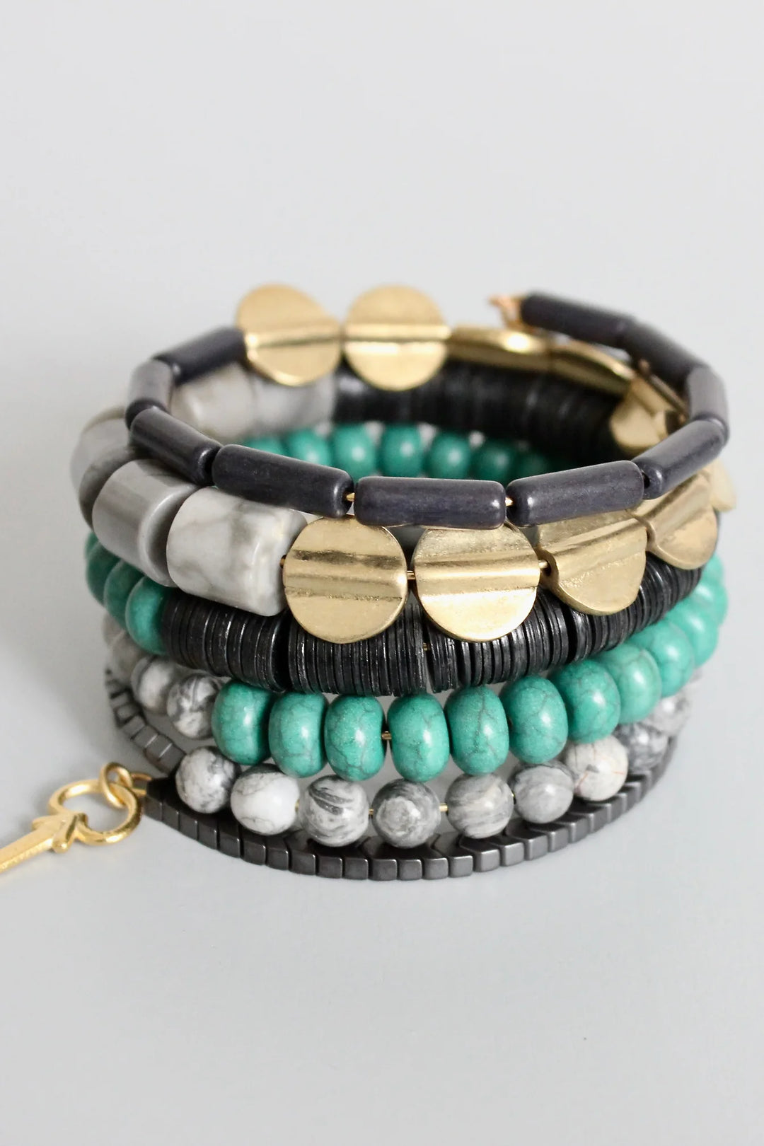 BRACELET BEADED OPEN CIRCLE VINTAGE BROWN W/AFRICAN TURQ
