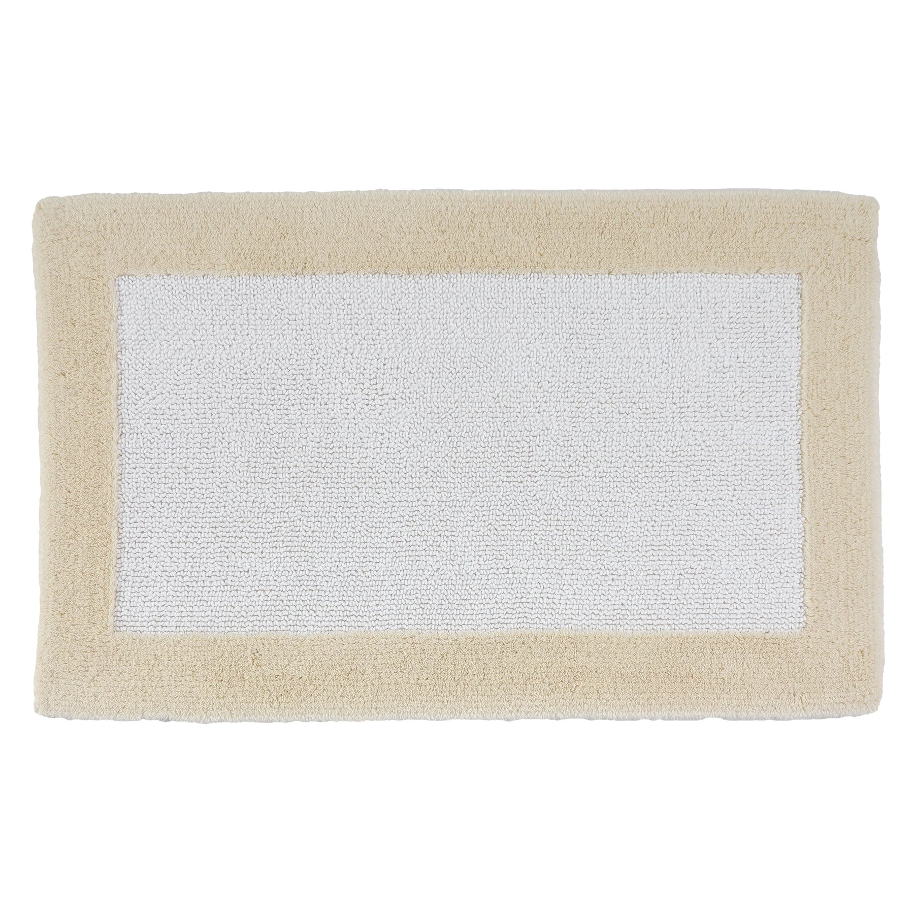 The Habidecor Origine Rug is reversible. It is made of 100% combed cotton and is machine washable. These rugs coordinate with the Abyss Super Pile and Twill Towels. The center of this rug is White with an edge band of Platinum.