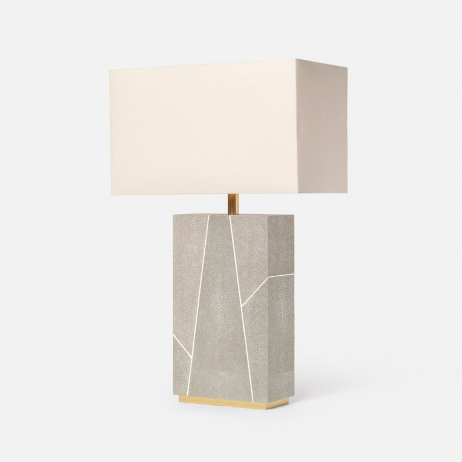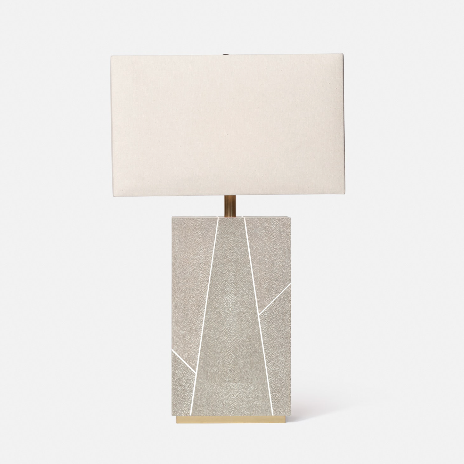 Inspired by classic Art Deco design, we mixed multiple colors of our one-of-a-kind faux shagreen with a faux bone trim. Our attention to detail and thoughtful proportions create a statement making lamp in the Breck.