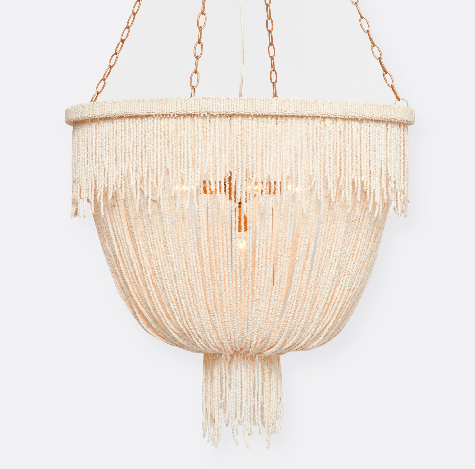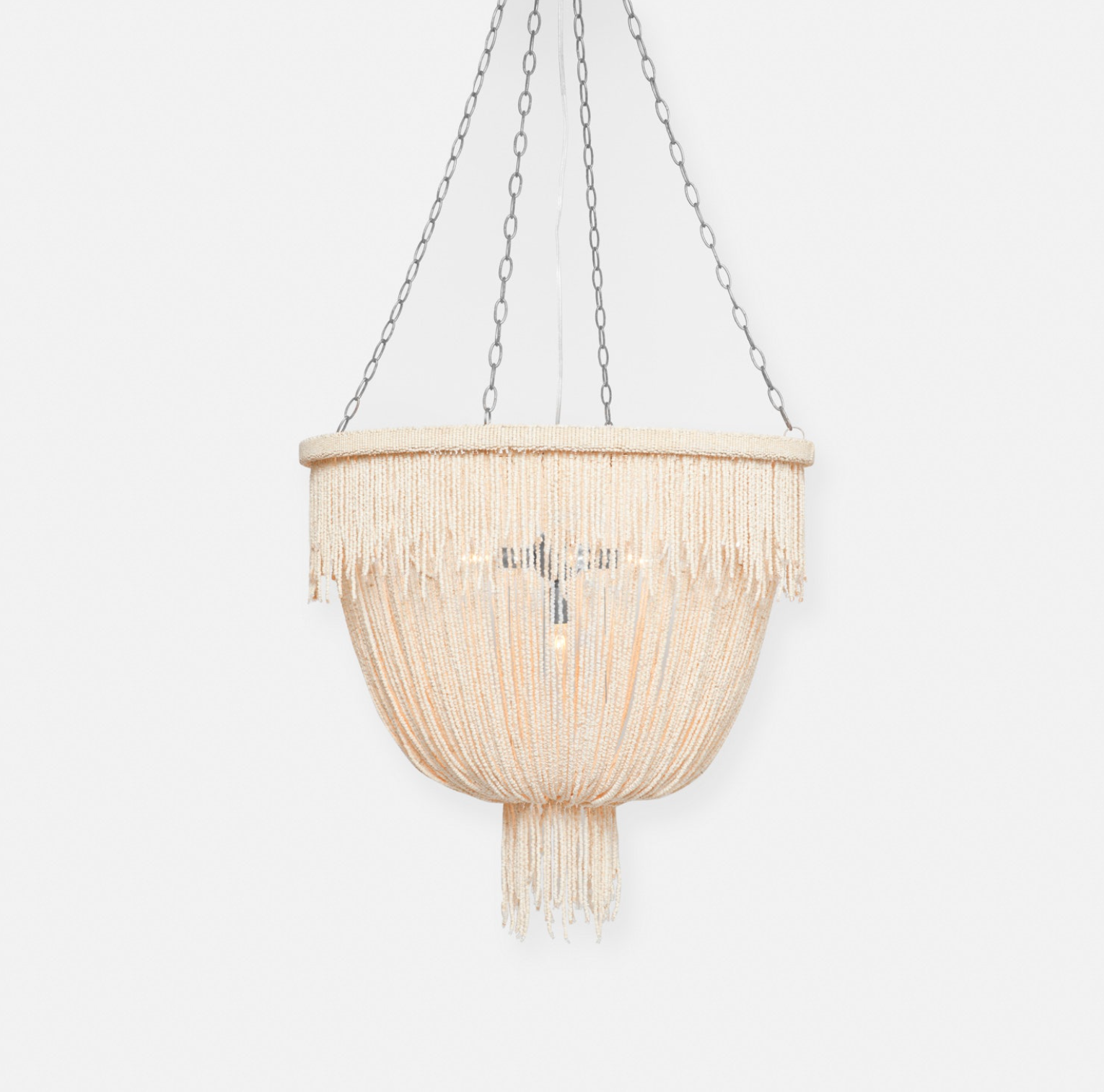 Loops of coco beads, in a flirty, draped silhouette, meet in a tassel of swaying fringe. It's also available as a semi-flush ceiling mount for entryways and smaller spaces.