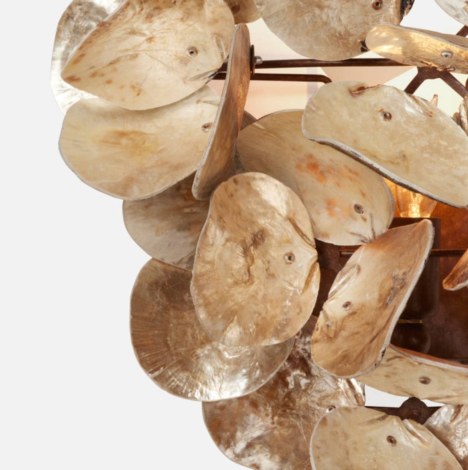 Finishes: Champagne Saddle Oyster Shell, Frost Saddle Oyster Shell, Natural Saddle Oyster Shell