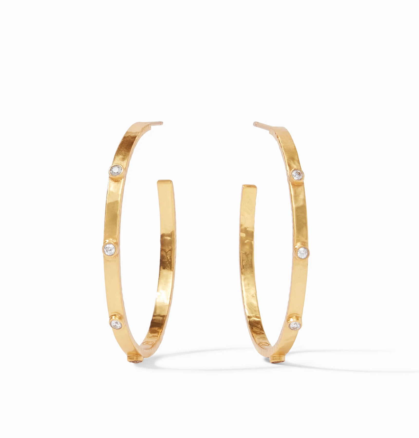 A lightly hammered hoop with gemstone accents goes with whatever you want to wear.
