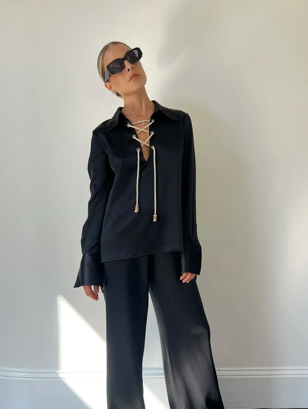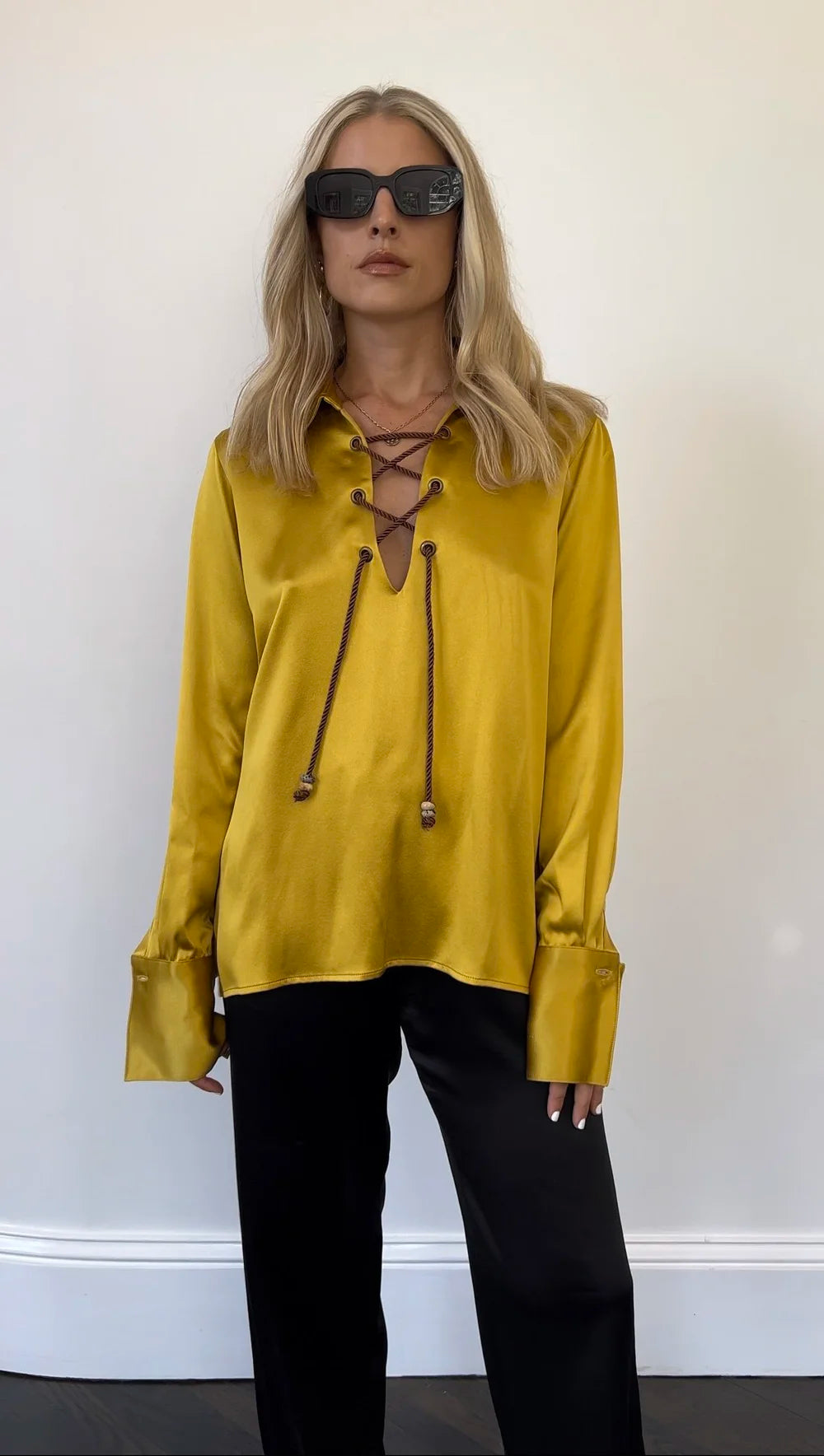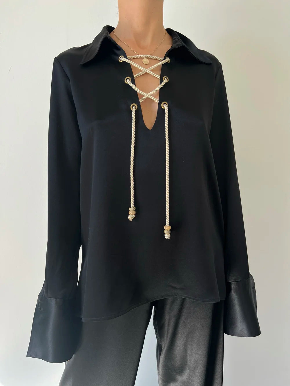 TOP BELL SLEEVE LINEN BLUE CHAMBRAY