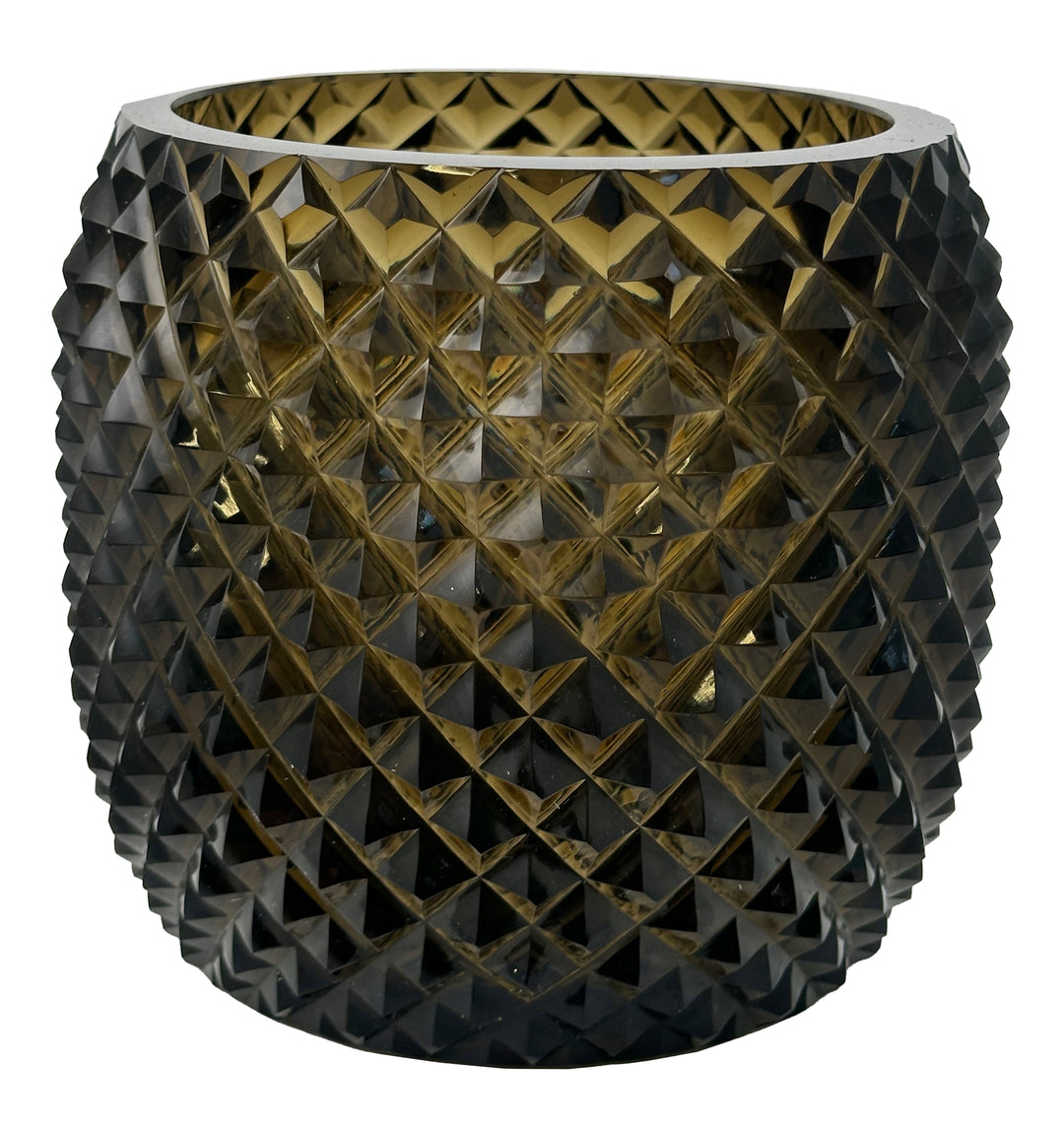 VASE DIAMOND CUT DARK SMOKE 5.7"H #76556