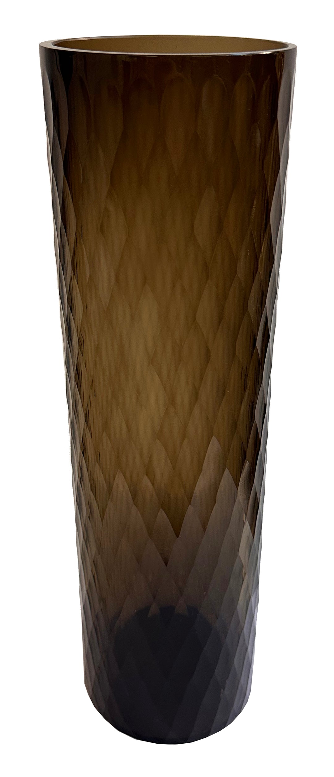 VASE HONEYCOMB CUT CYLINDER DARK SMOKE 16.9"H #76523