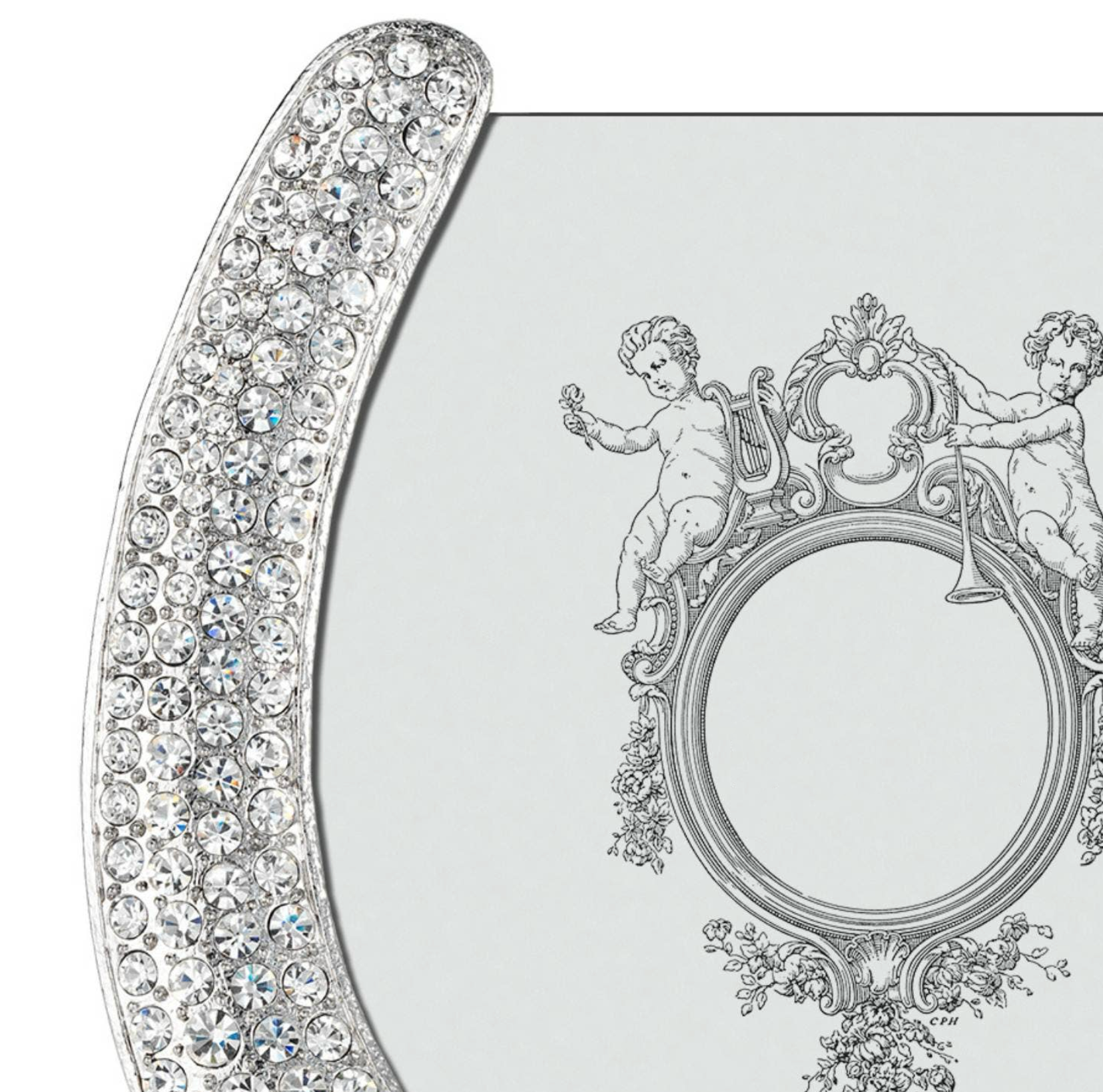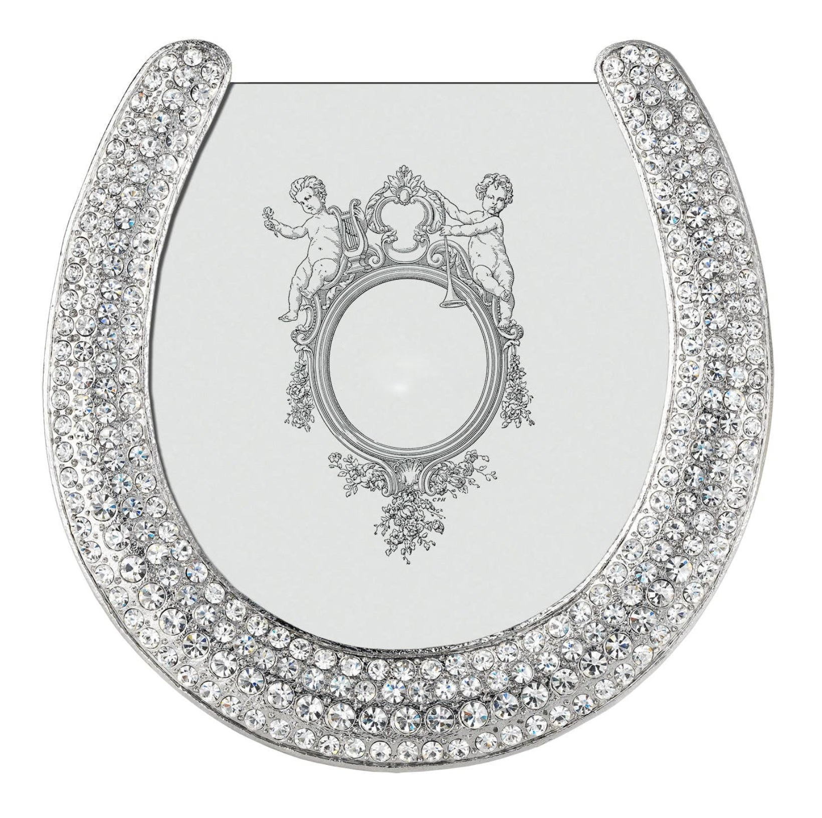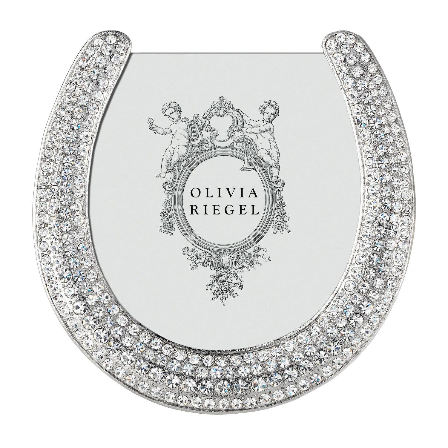Add a touch of luck to any space with a glamorous pewter horseshoe picture frame. Encrusted with hand-set clear pavé European crystals.