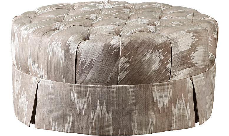 The Sheath Cocktail Table is calming and comfortable, evoking furniture that has been draped with heavy cloth. It features full upholstery with tufted buttons atop a circular form.