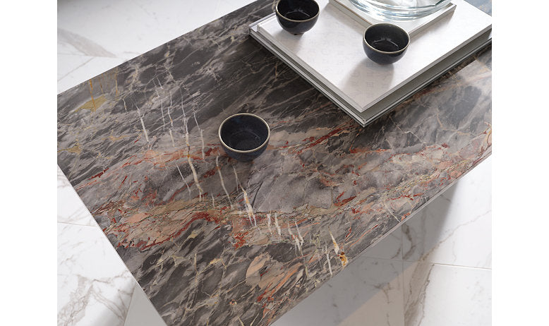 The Penelope Cocktail Table is a substantial, spirited piece made entirely from grey quartz. Its monolithic base supports a smooth, naturally patterned tabletop.