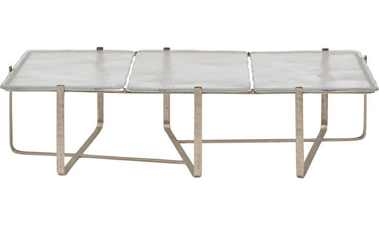 Raw and handcrafted, the Trevi Cocktail Table - Large features a cast bronze frame with an irregular geometric shape. It is topped with a beautifully corrugated Murano glass texture, inspired by the undulating surface of water on its namesake fountain in Rome. Pair it with the Trevi Cocktail Table - Small to create an expressive duo in your living room.