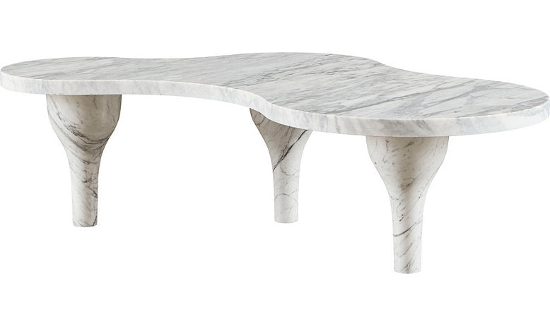 The Freeform Cocktail Table is an imaginative piece inspired by modernist forms. Its surface is a pool of amorphic polished Arabescato marble.