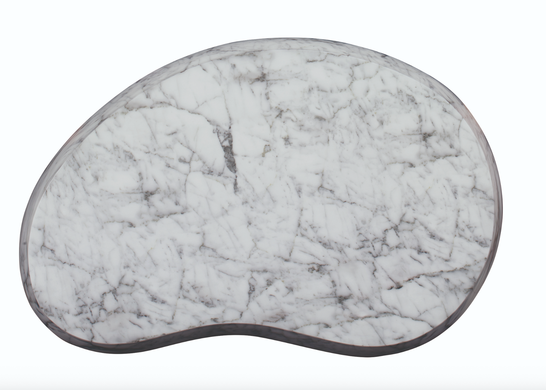 The Outdoor Large Bunching Cocktail Table features glass-reinforced concrete finished in white with striking black veining. Its versatile design and durable construction make it an ideal addition to enhance any outdoor living space.