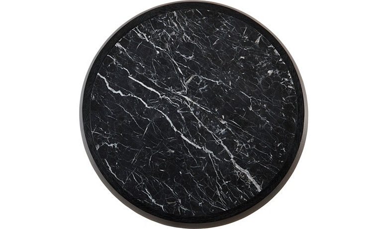 Quartered oak veneered base with inset marble top in Honed Nero Marquina or Honed White Calacatta.