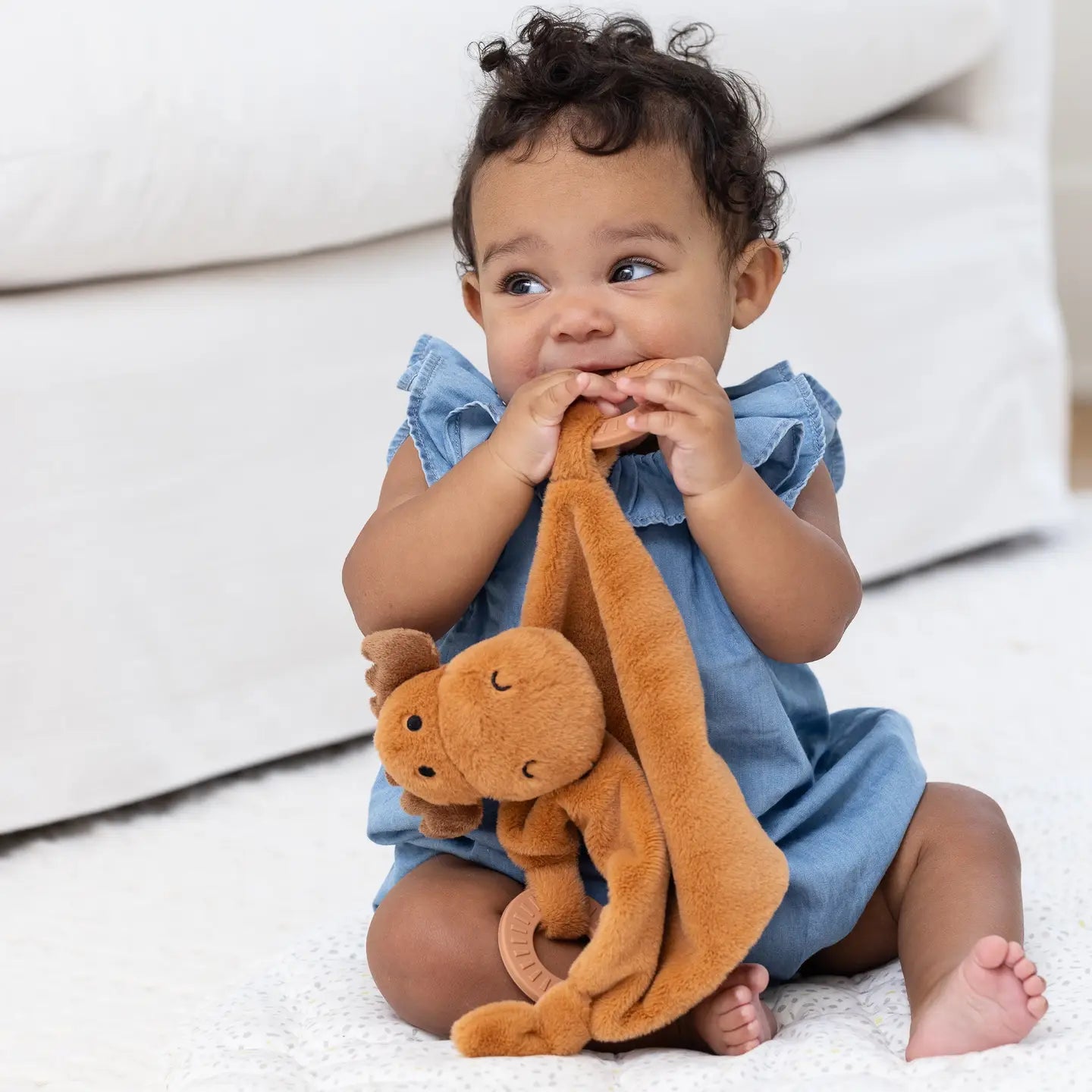 The Give Back Buddy collection was designed for gifting and double giving. Each pacifier lovey gives 2 meals to a child in need. Featuring a plush friend to cuddle and teething rings to soothe sore gums, the Teether Buddy is the ultimate companion. The gentle rattle makes it a fun toy for infants.
