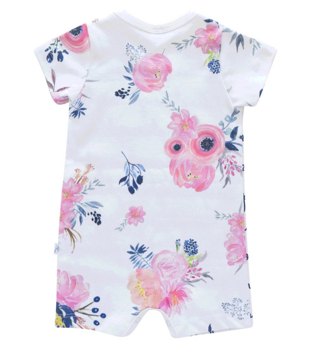 ROMPER CINCHED SLEEVE PEONY 6-12M #59003
