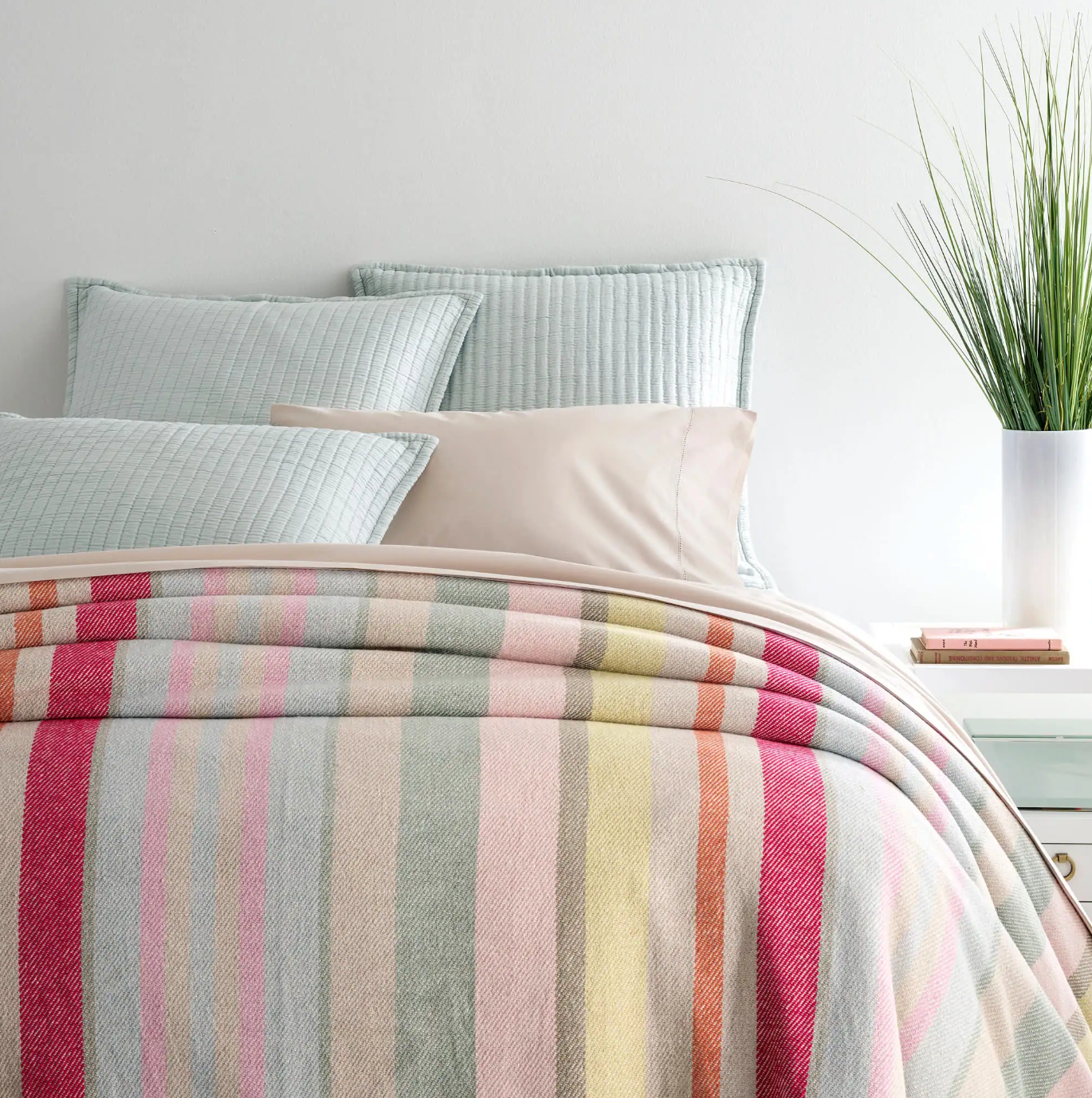 Find your place of perfect happiness with this twill weave cotton blanket in a colorful confluence of treasure trove colors. A snuggle-up on the deck and watch the sun go down, or top-of-bed blanket that coordinates with our Ines bedding collection.