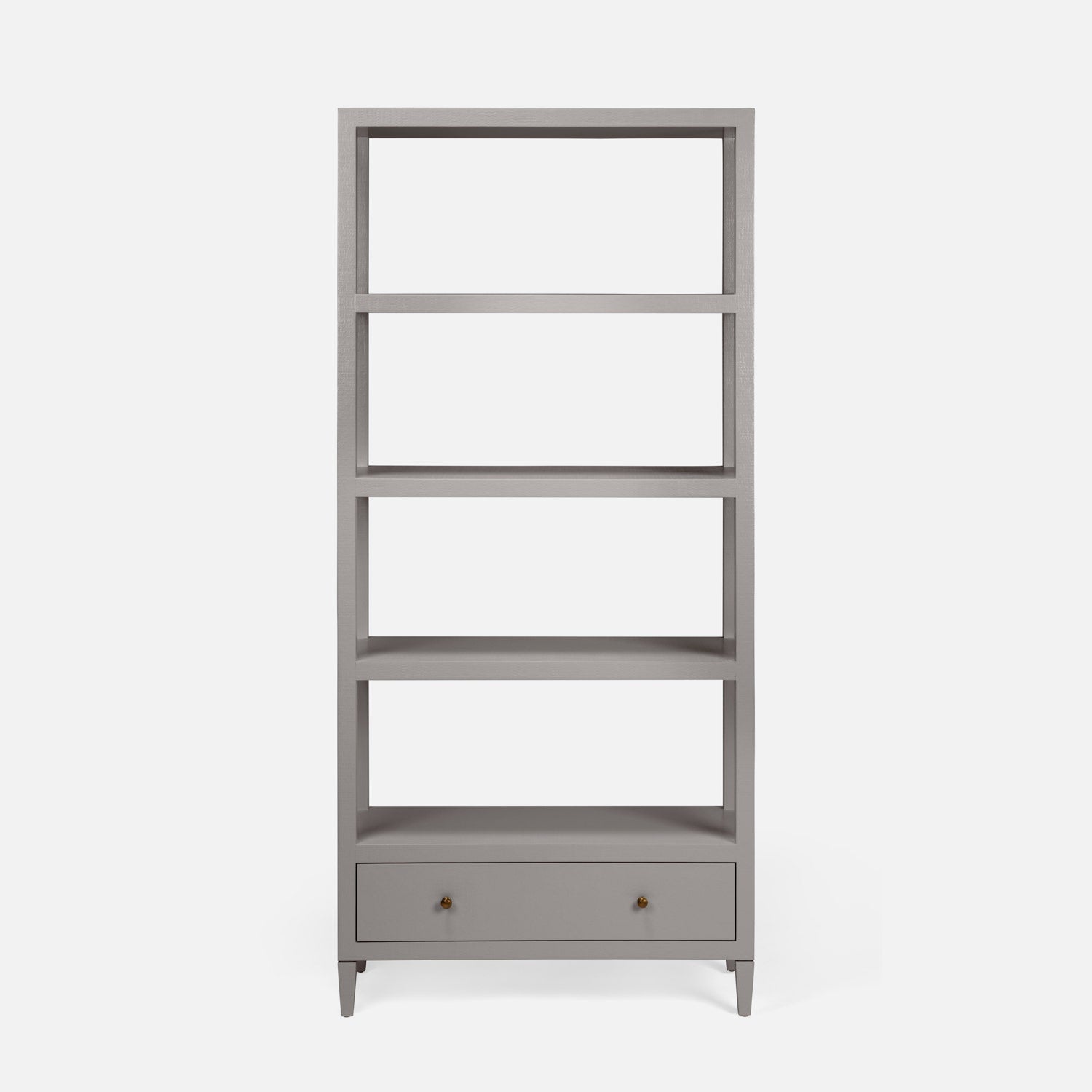 Our faux raffia Conrad collection, a Made Goods favorite, has expanded to include bookcases with the same expertly crafted cabinetry and meticulous attention to detail. With proportions that are both modern and refined, each bookcase lends quiet grandeur to any space.