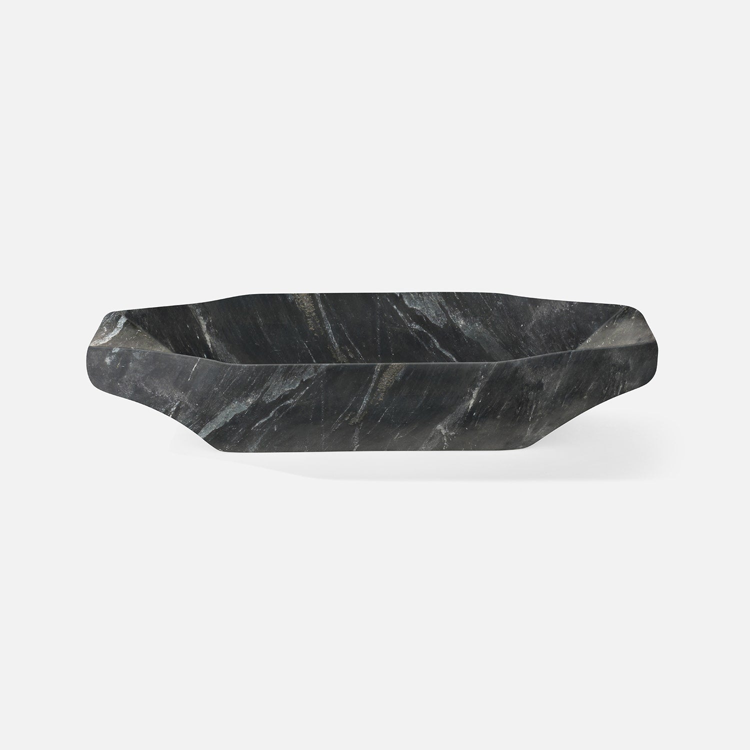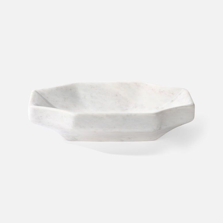 The shallow silhouette and cool, rippled marble of the Merritt bowl work together to create an intensely luxurious look.