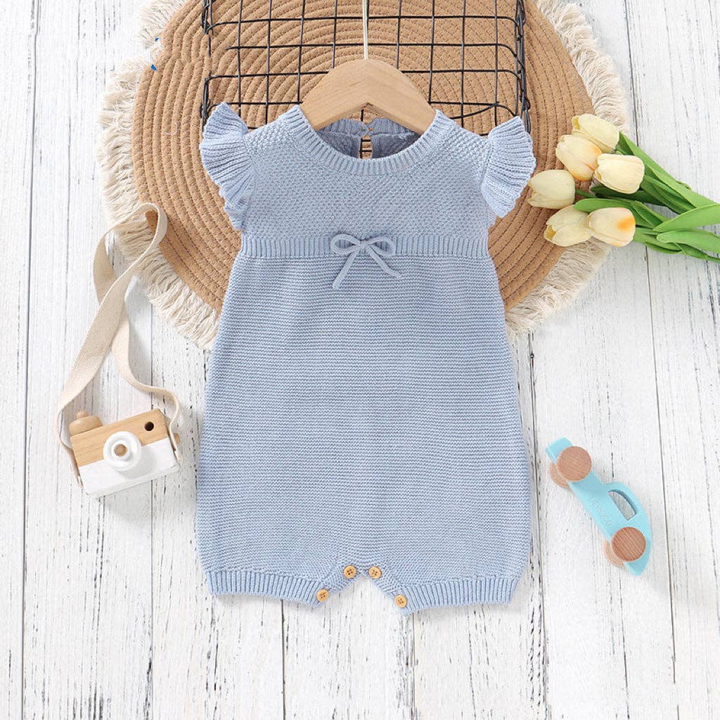 A perfect blend of style and comfort, treat your little one to our Baby Solid Color Flying Sleeves Sweet Knitted Rompers. The soft and stretchy fabric boasts an exquisite knitted structure that is sure to keep them cosy. Ideal for special occasions and everyday play, this romper is a must-have for your little one's wardrobe.