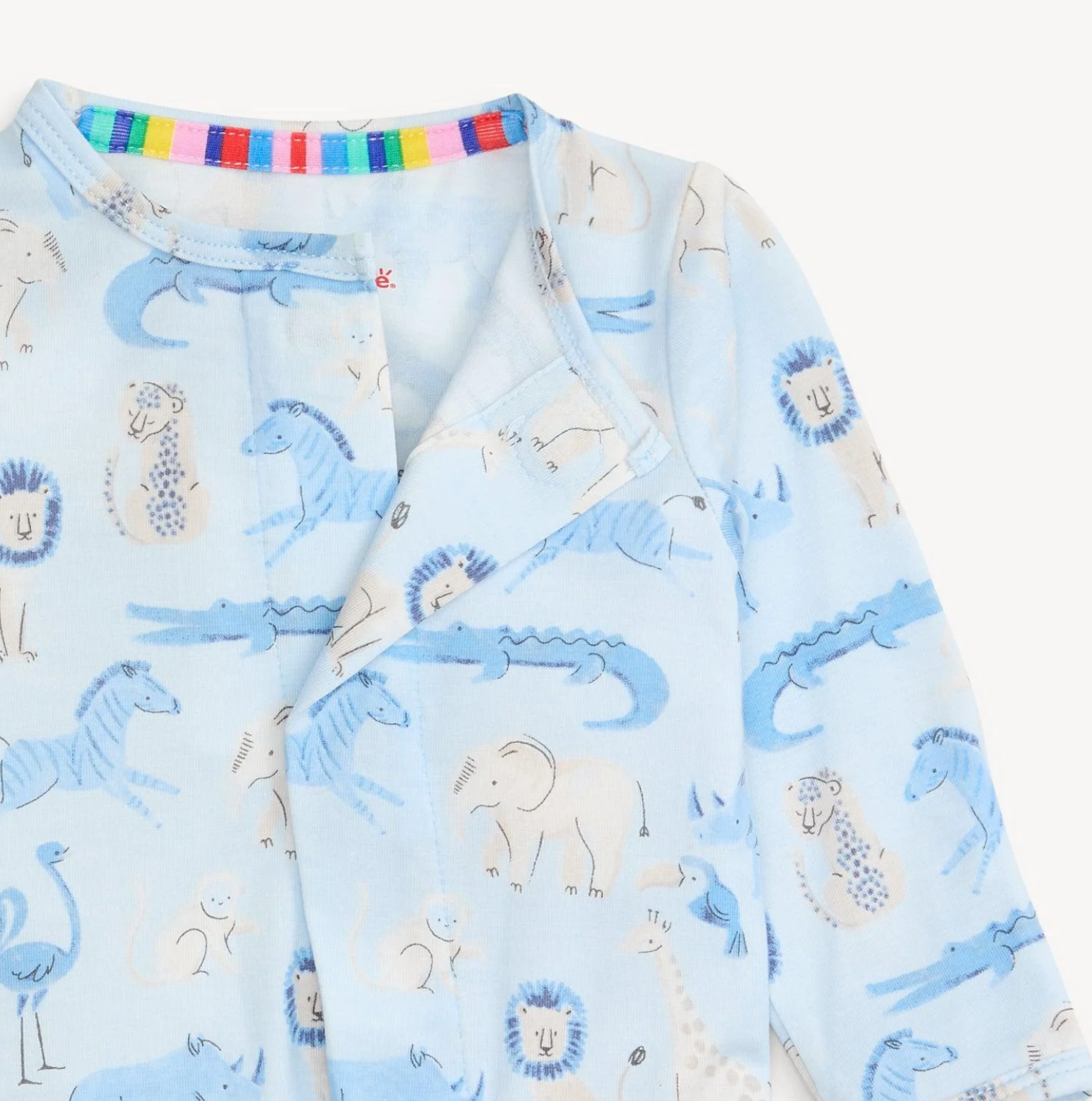 - Magnetic closures: magnets line the seam from the neck to upper thigh for sizes up to 0-3m & from neck to crotch for sizes 3-6m and up.