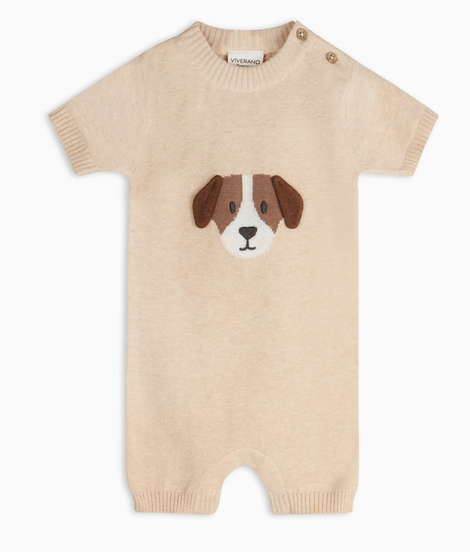 100% organic cotton sweater knit baby romper with adorable Puppy embroidery featuring 3D ears and ultra-soft hand feel.
