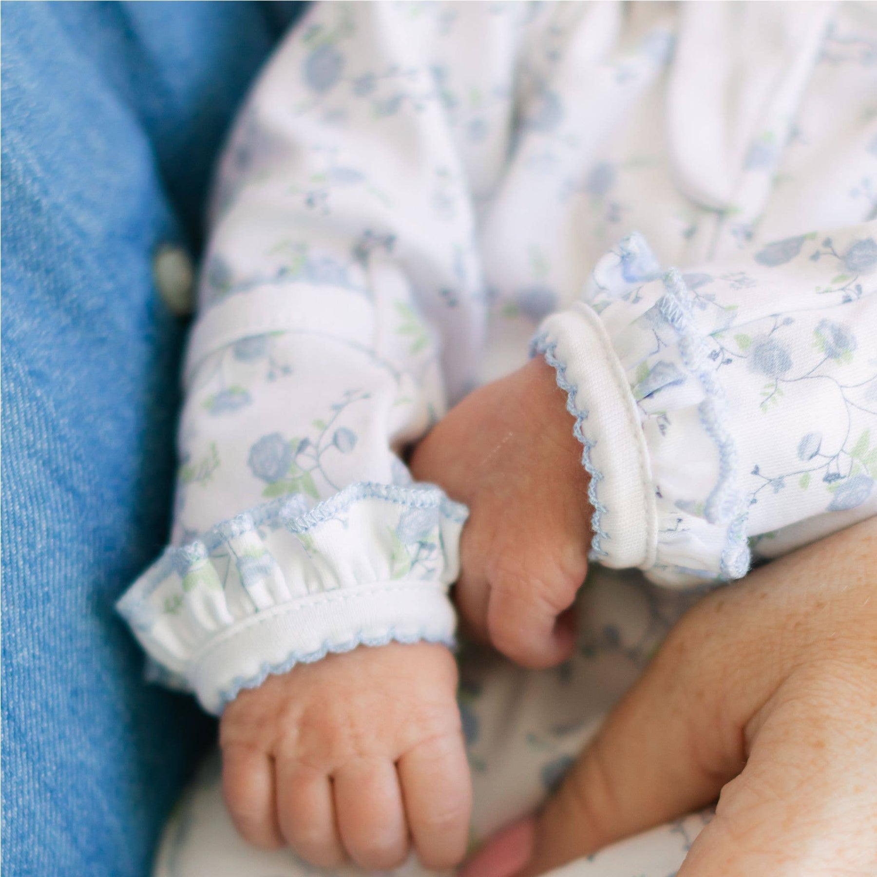 Two-way zipper allows for easy diaper changes without completely undressing baby