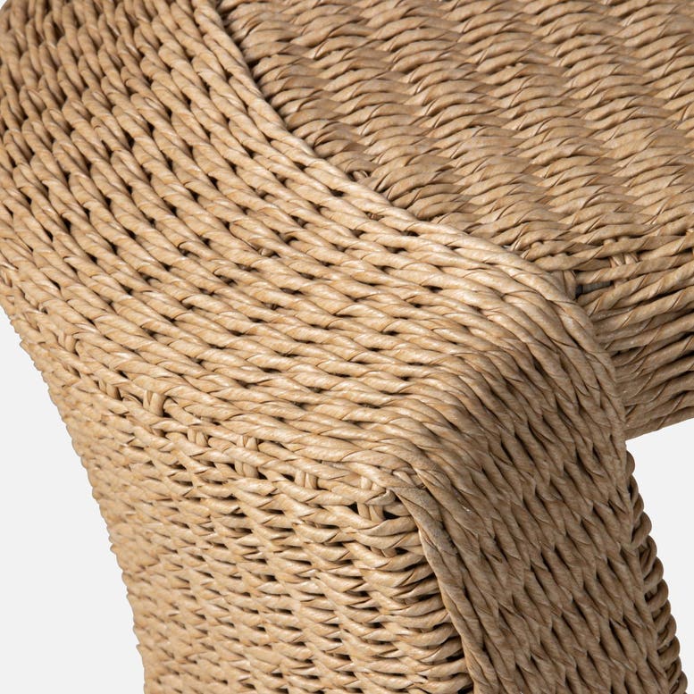 Details, details! Twisted faux wicker is elegantly shaped and woven with graceful angles in bold proportions. The natural palette and convenient shelf offer flexible functionality for spaces indoors and out.