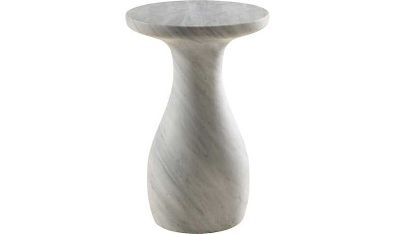 Sculptural and sensual, this modern occasional table features a graceful, custom cast resin swell base, finished to a low luster dark bronze patina. Also available in Carrara Marble.
