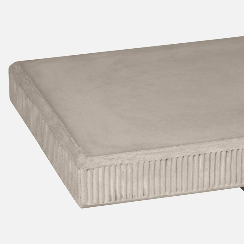 A study in sculptural elegance, the Grier console anchors any space with its striking, refined silhouette. Crafted entirely from concrete, it features a classic, tabletop supported by a bold keyhole pedestal base, accented with vertical grooves that add texture and visual depth to the form. Concrete naturally distresses over time; minor cracks and imperfections are to be expected. Items crafted with this material can vary slightly from piece to piece and may change over time. For maintenance instructions and notes on what to expect, please refer to the Product Care & Warranty guide.