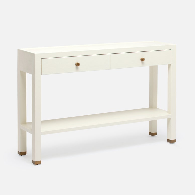 The substantial Jarin is fully finished in our faux Belgian linen, highlighting the material's texture and sheen with a simple shape. A great lip element around the top surface is only one of the piece's many considered details.