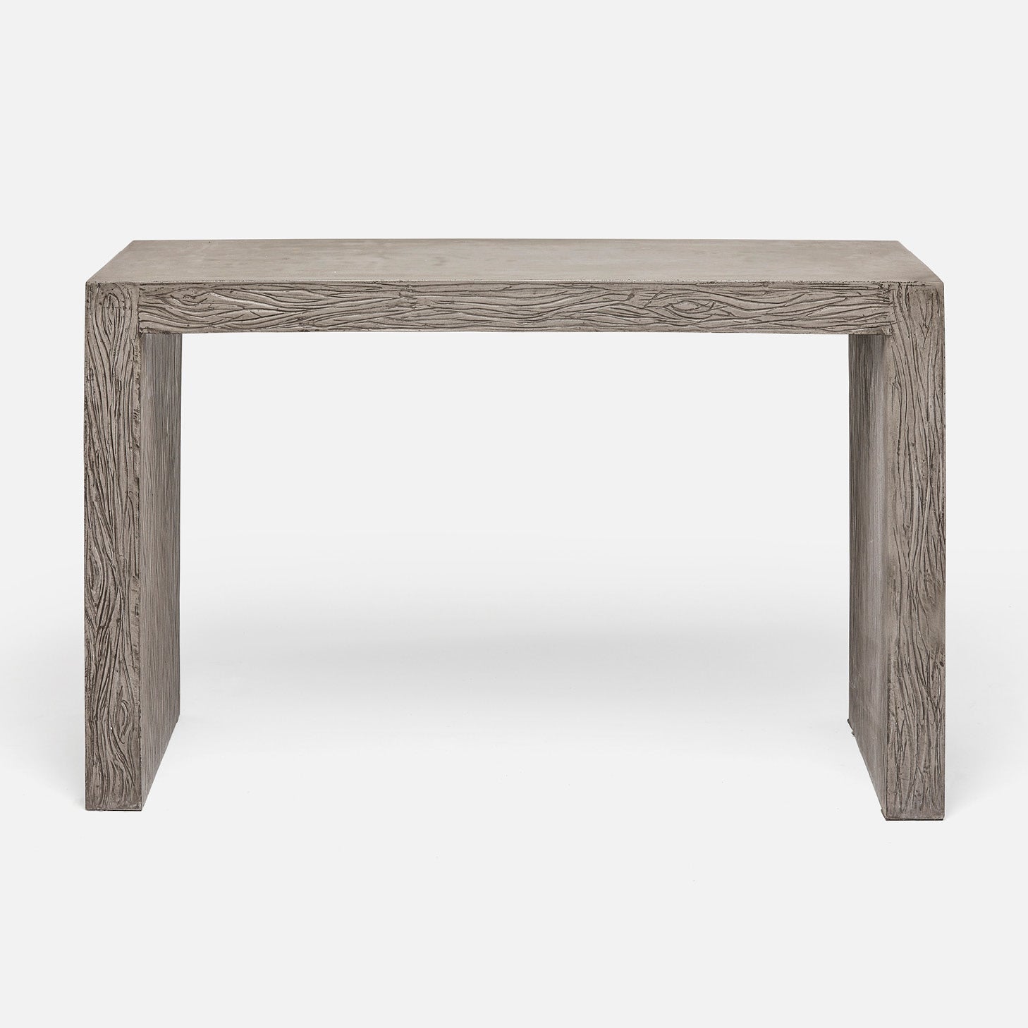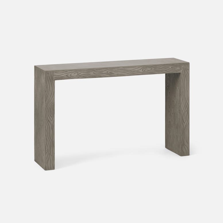 This concrete console is etched in fauxbois, then waxed and oiled.