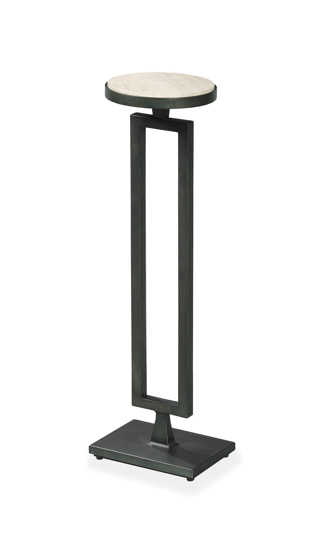 • Rustic black finish steel base with limestone top