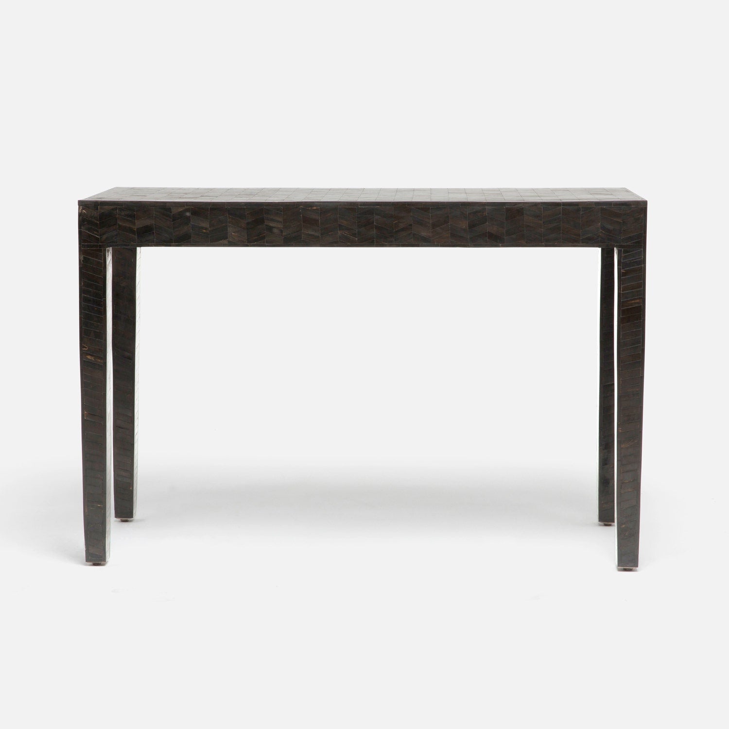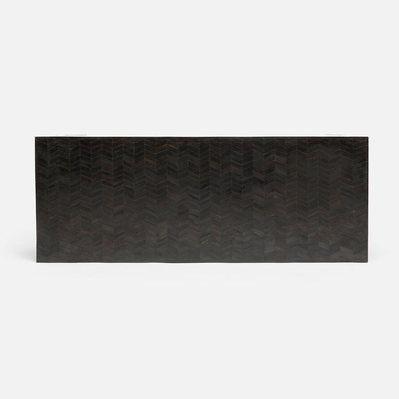 Black horn takes on a sophisticatedly stylish look with our graceful Ragnor. The chevron pattern brings out the material's subtle hues, creating an unexpected look for the classically shaped console.