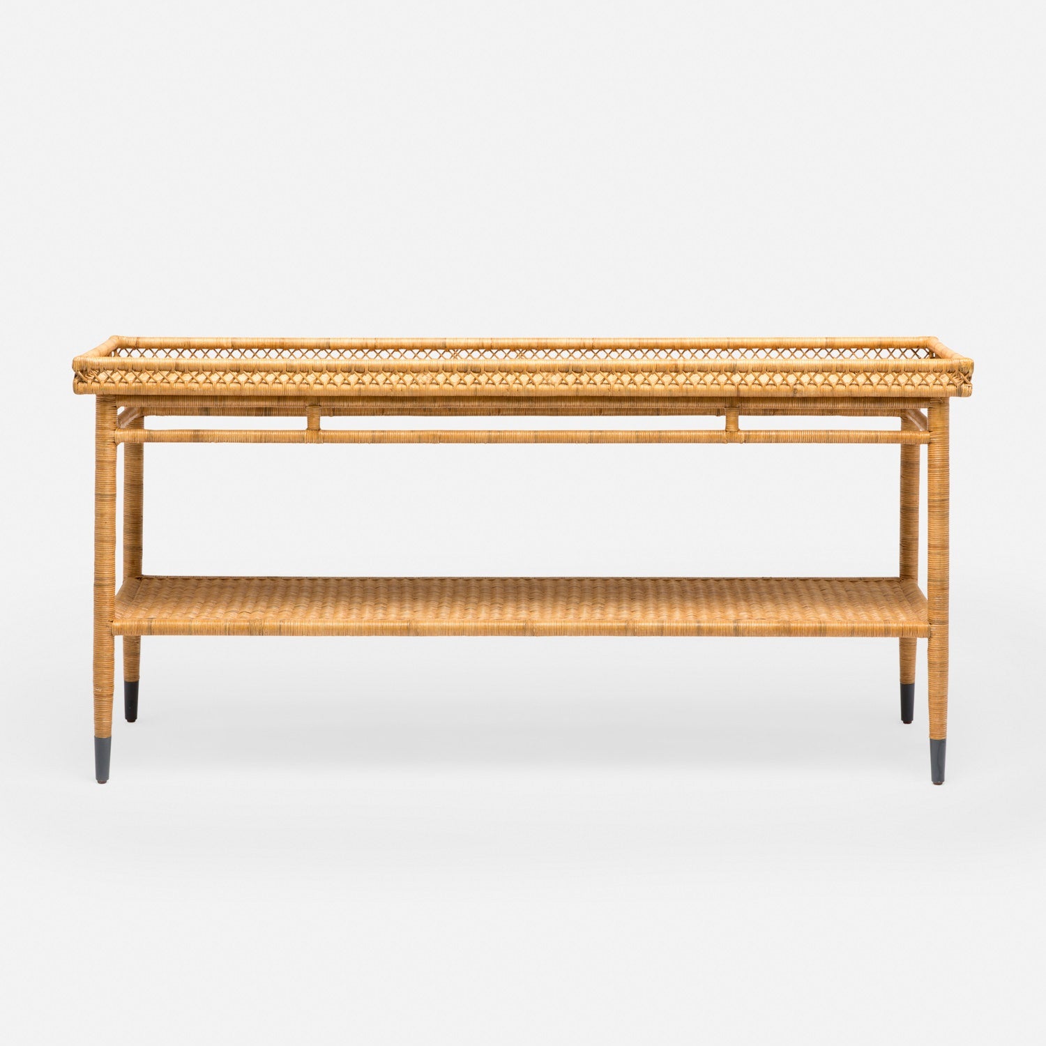 Our wicker Sarah collection is formed from tightly woven rattan, which translates to this exquisitely crafted collection. Different hues of natural rattan are woven together to create the piece's slight color variation. Intricate patterns reveal the artisanship behind this collection.