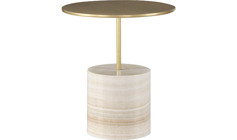 Inspired by modern jewelry design, the Chase Spot Table has a contemporary vibe that's accented by its elevated materials: bronze and polished white bubble onyx.