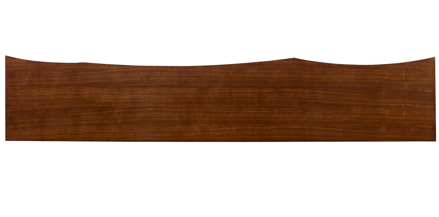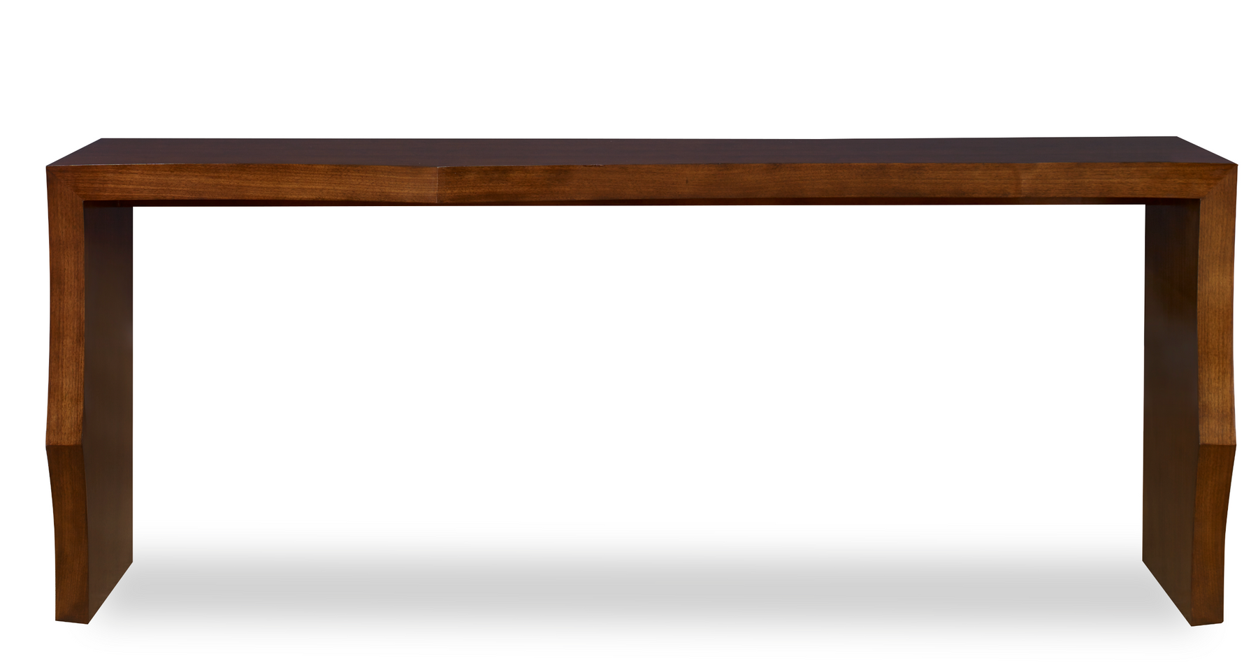 The Devin Console is designed to mimic the look of a live edge form with the leading edge faceted in an organic pattern. Wrapped in American Walnut Veneers that are stained in a honey brown finish, Devin showcases the beauty of wood grain in a consistent shape and form. The back edge is flat allowing this console to sit flush with a wall.