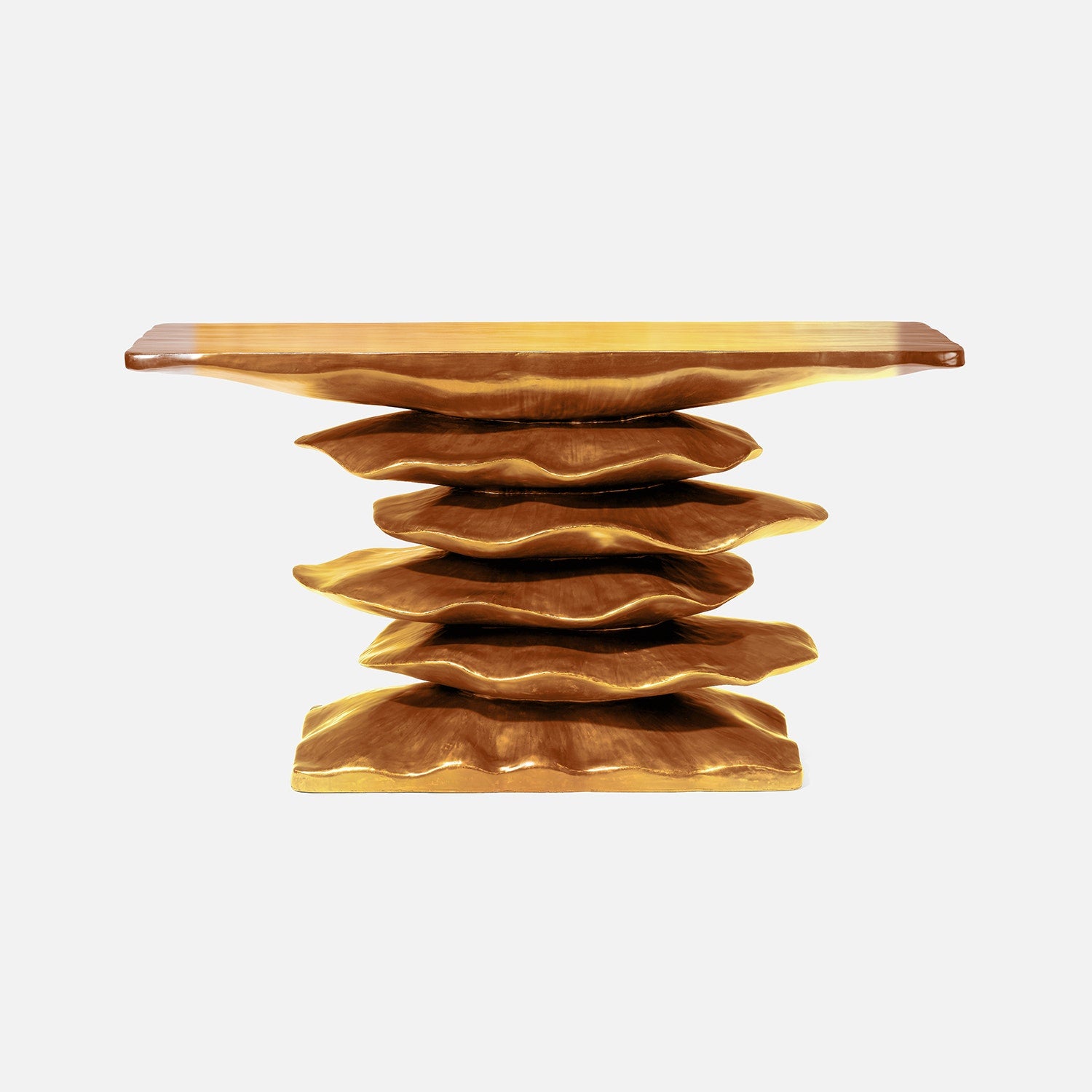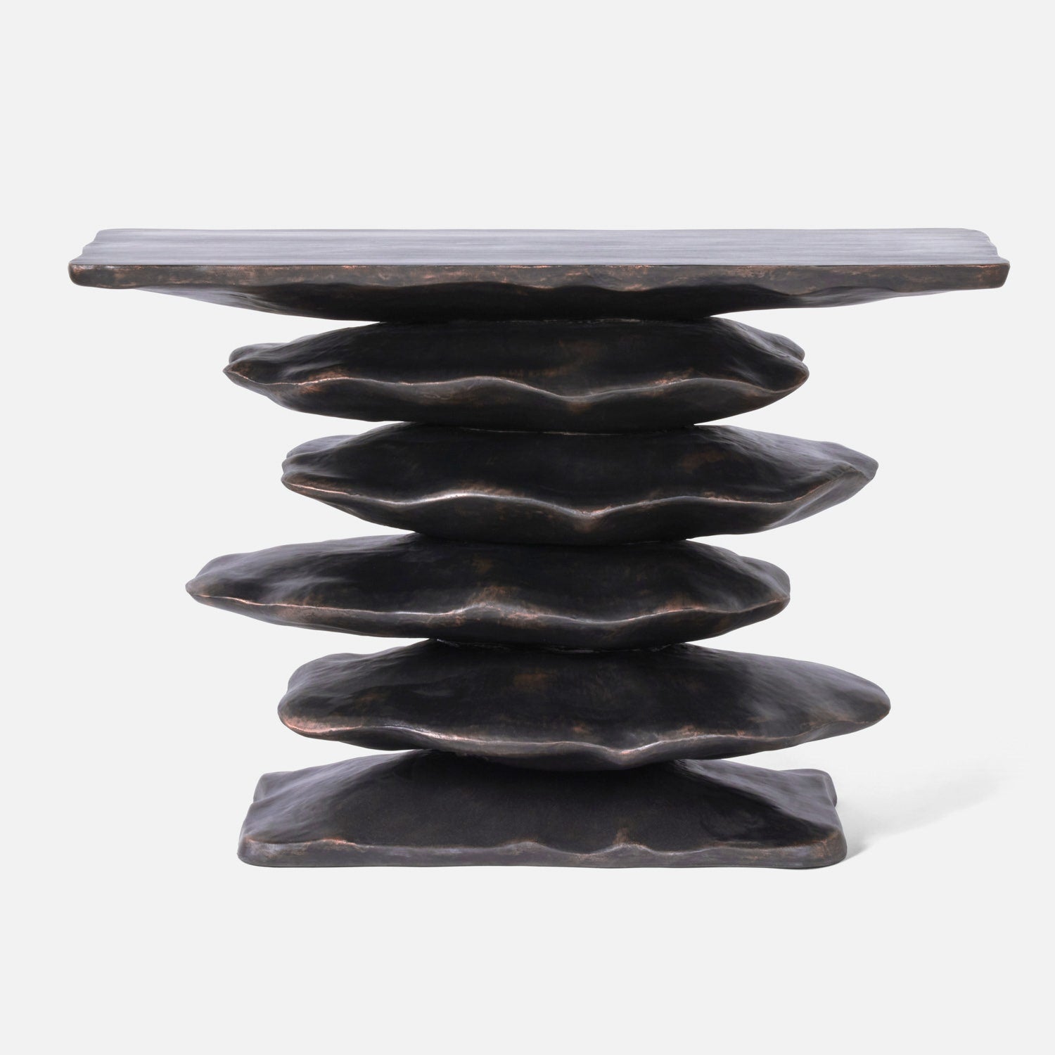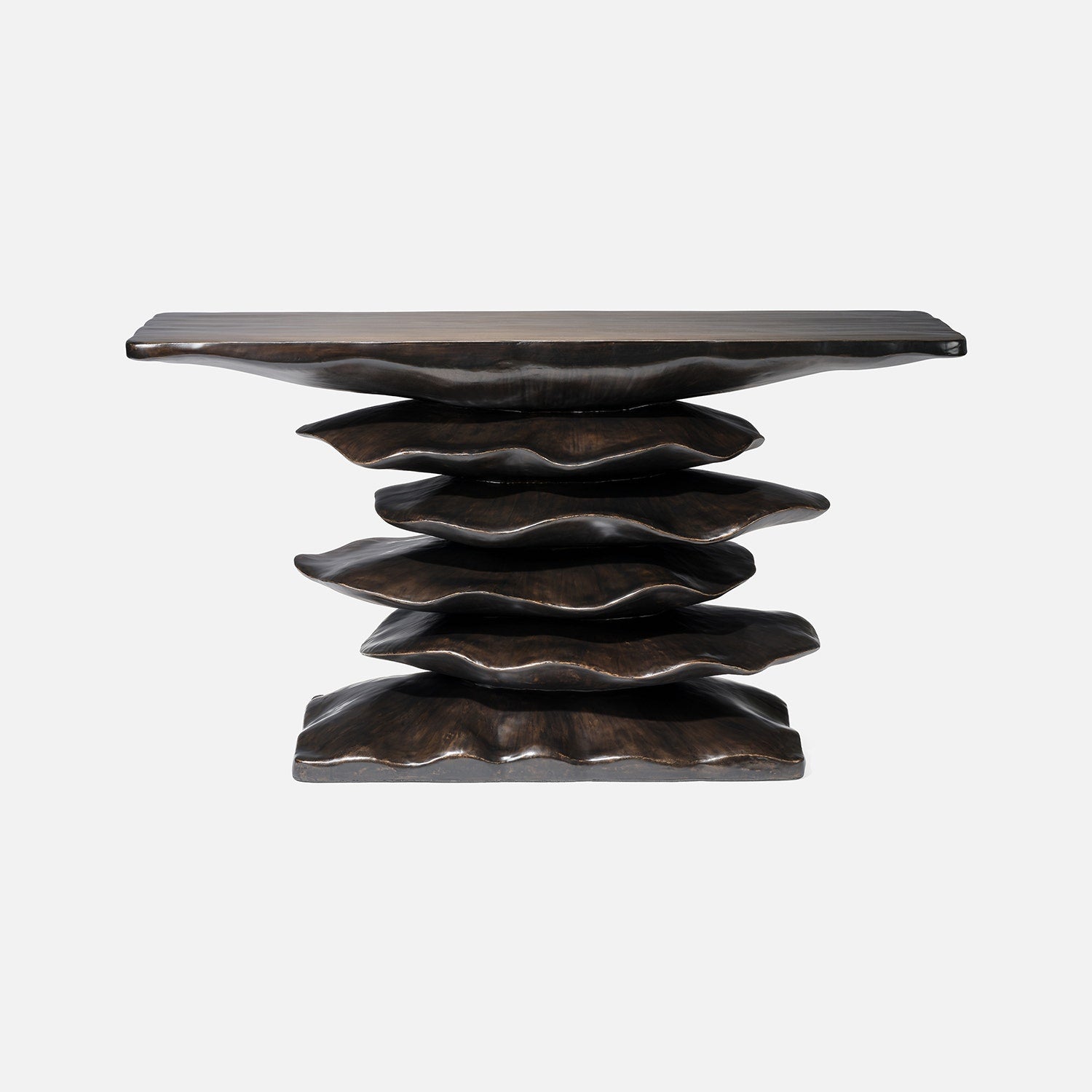 Stacked cast resin creates the organic shape of the Zuri console.