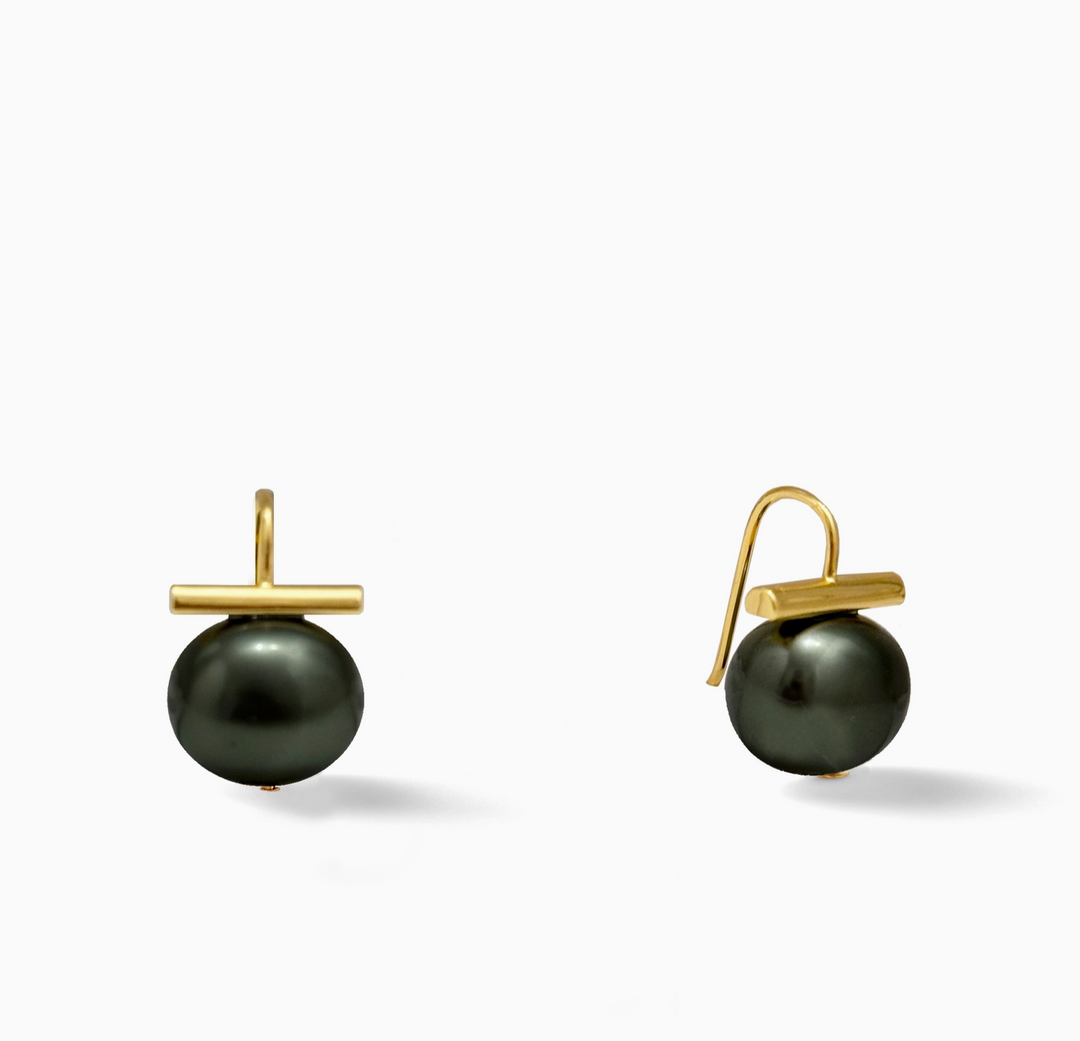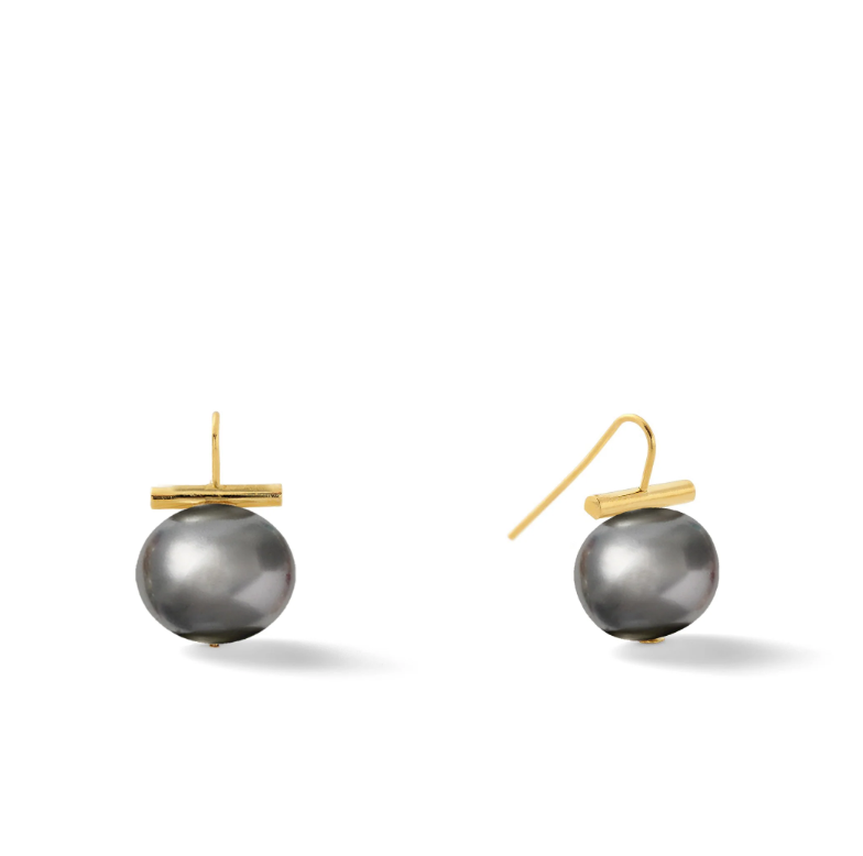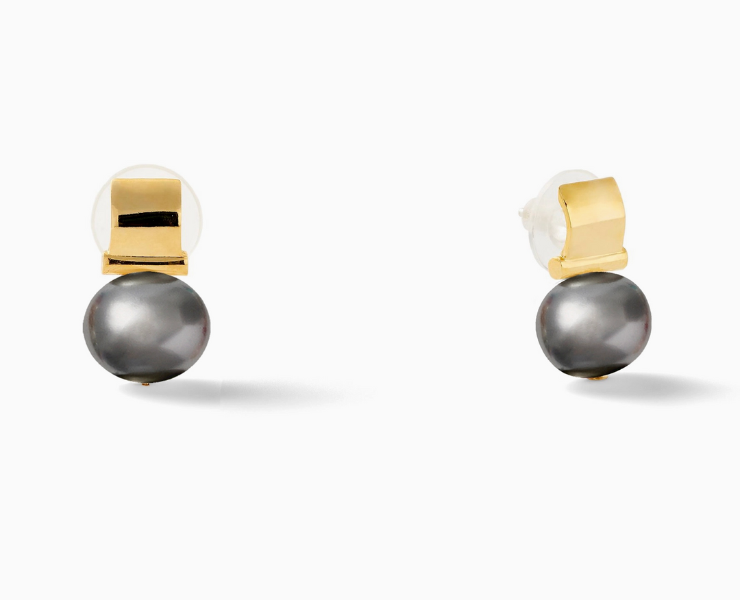 EARRING CLASSIC MEDIUM PEBBLE PEARL DARK GREY #65737