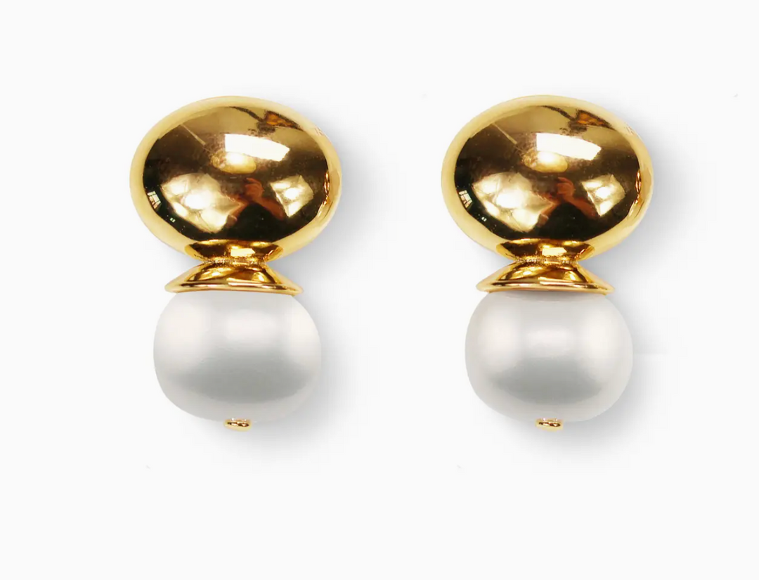 EARRINGS PEBBLE PEARLS MEDIUM WHITE+GOLD #56995