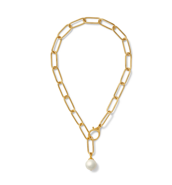 NECKLACE PAPER CLIP LINK WITH WHITE PEARL DROP #67346