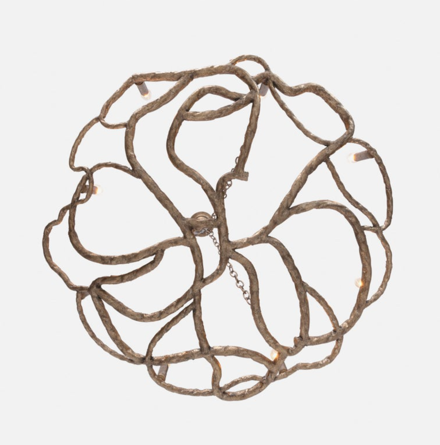 Set a distinctive mood overhead with this grand eight-light chandelier in twisted, unburnished Tarnished Silver. Light shines down through the intersecting branch pattern to create a stunning profile of luminescence.