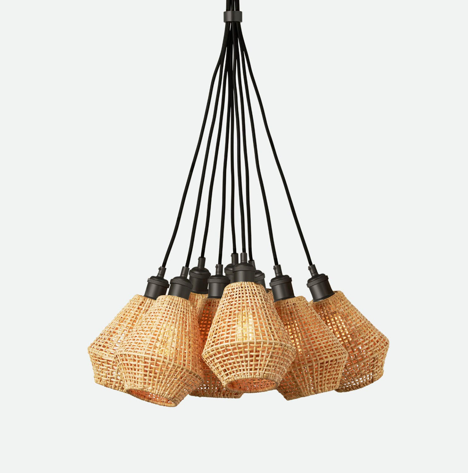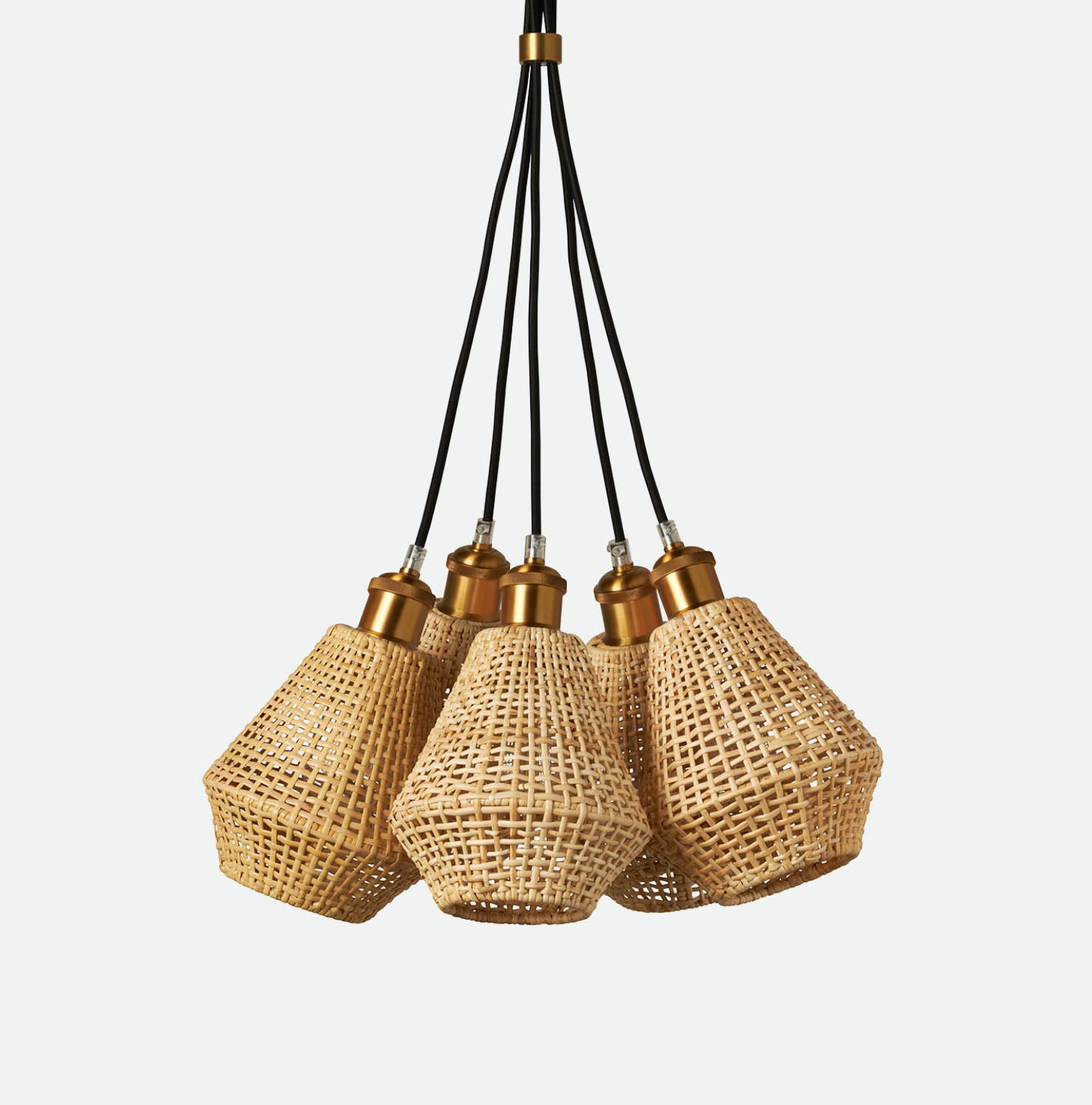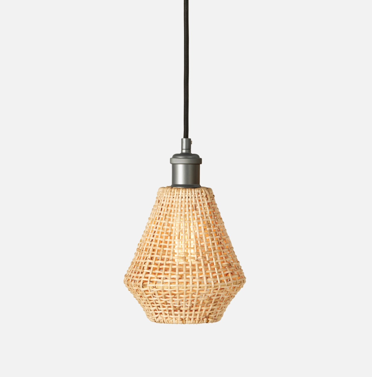 With the Nashua pendant, the possibilities are endless. A handwoven natural shade-tightly woven from unprocessed slimit rattan-is cleverly paired withgleaming metallic hardware. Available as a solitary piece or in groupings of five or nine.