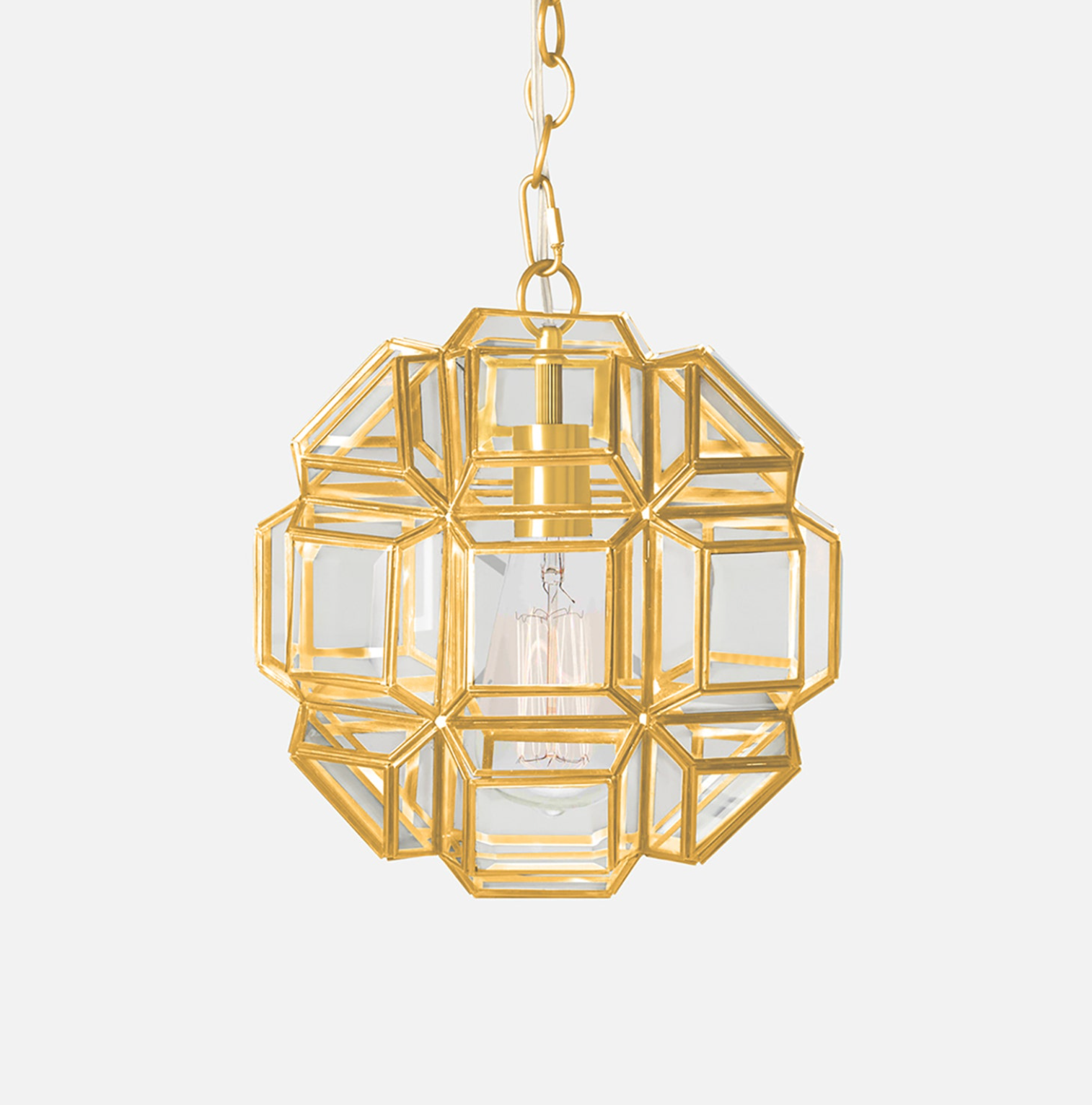 Distinguished by its geometric frame, our Odalys pendant combines sleek lines with geometric edges to bring industrial appeal to a space.