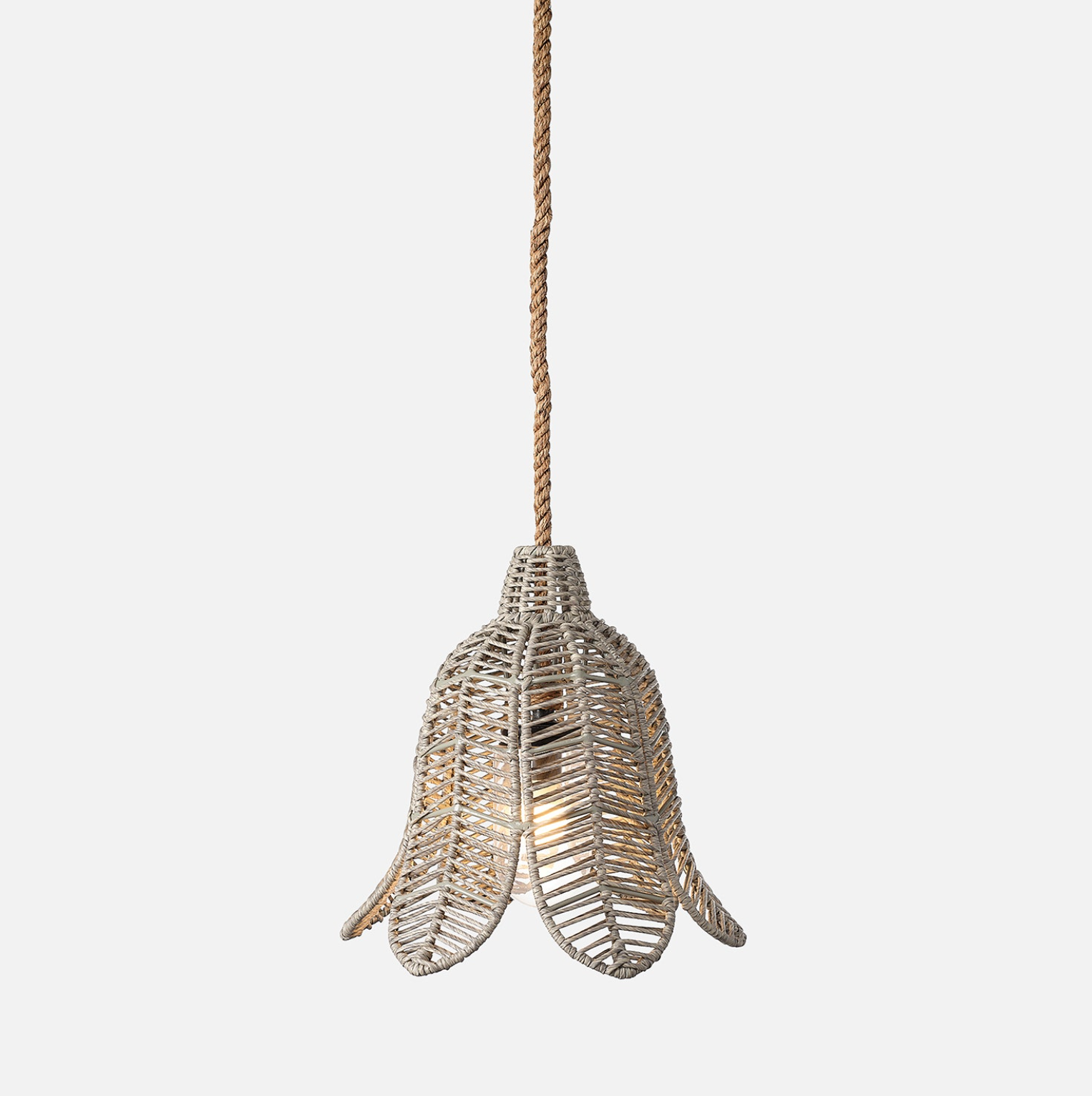 Tiffany pendant provides a garden-like, whimsical feel with a characteristic lily shape. Made from durable, refined twisted faux wicker.