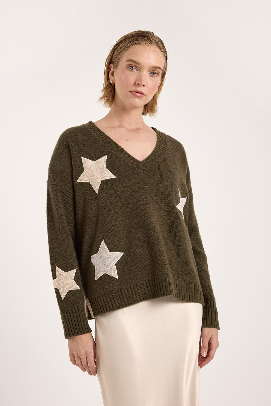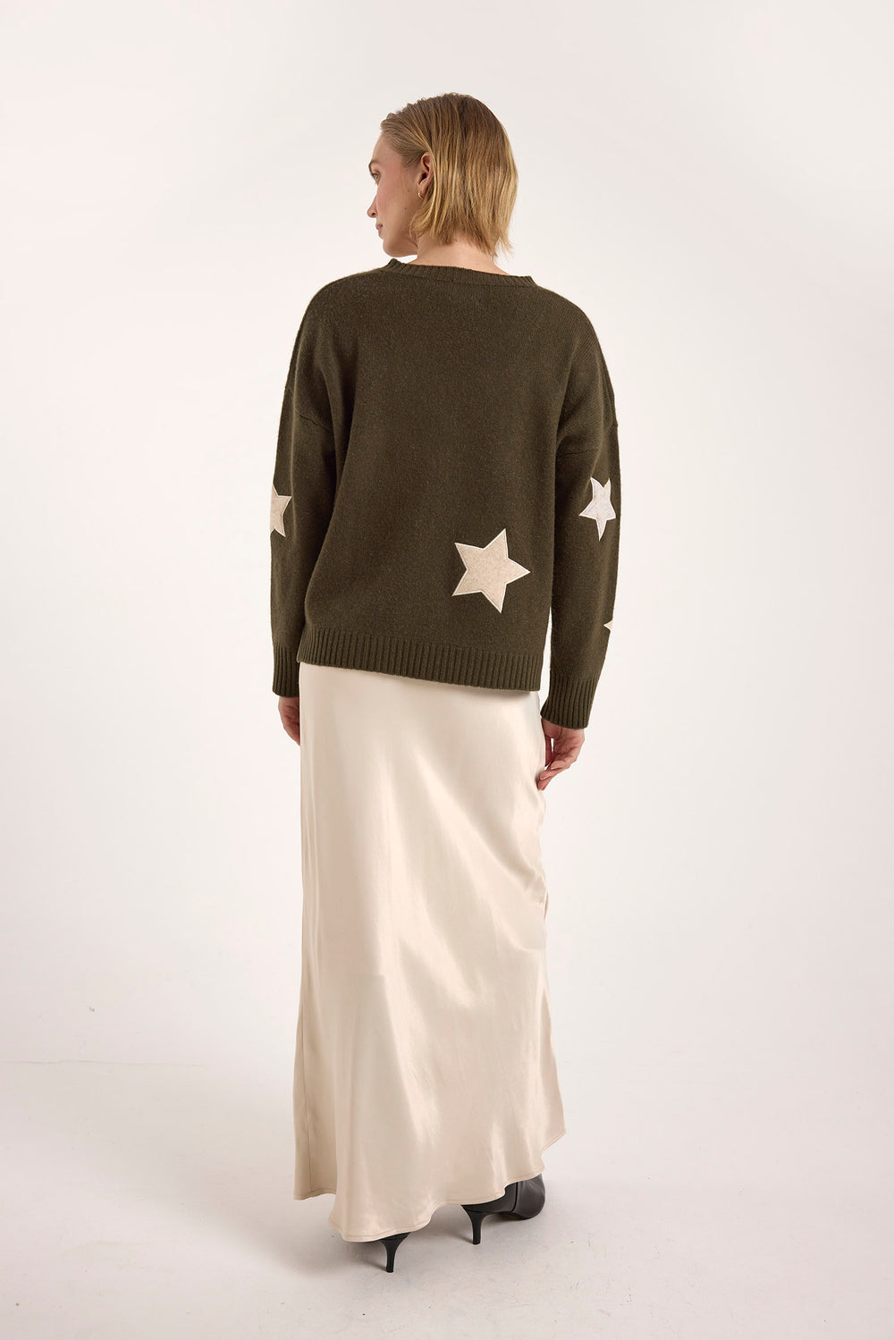 SWEATER V NECK HOT FIX BOLT OLIVE