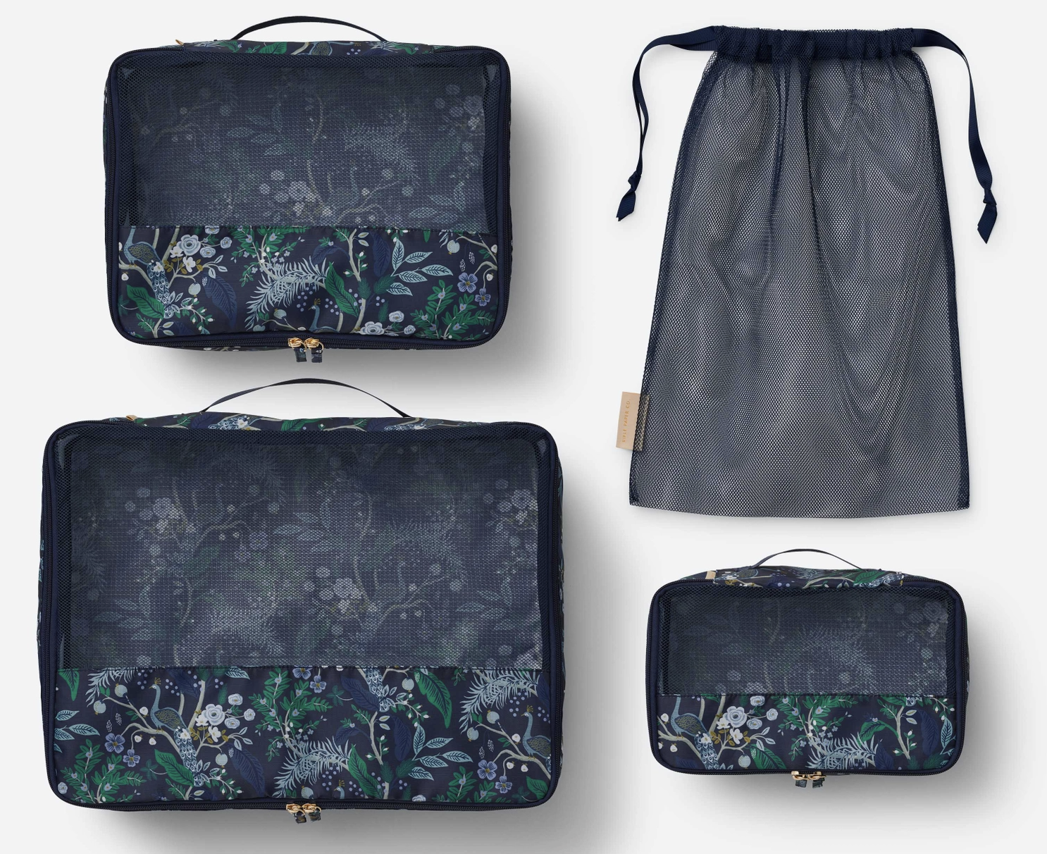 Make your packing prettier with this set of three packing cubes with zipper closures and a matching drawstring mesh laundry bag.