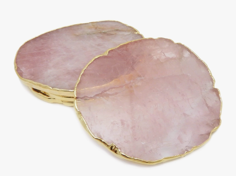 SET OF 4 COASTERS AGATE ROSE QUARTZ AND GOLD