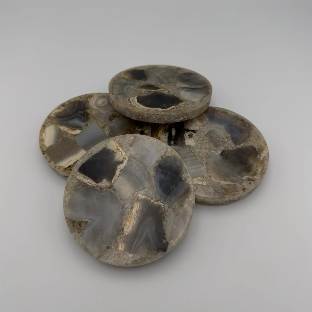 COASTERS AGATE NATURAL GRAY WITH SILVER TRIM LARGE - SET OF 4 #70608