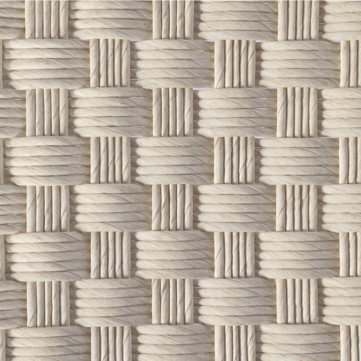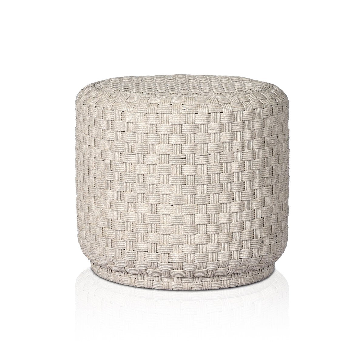 Material focus. Classic drum-shaped outdoor end table with a small plinth base in a chunky box weave. Cover or store inside during inclement weather and when not in use.