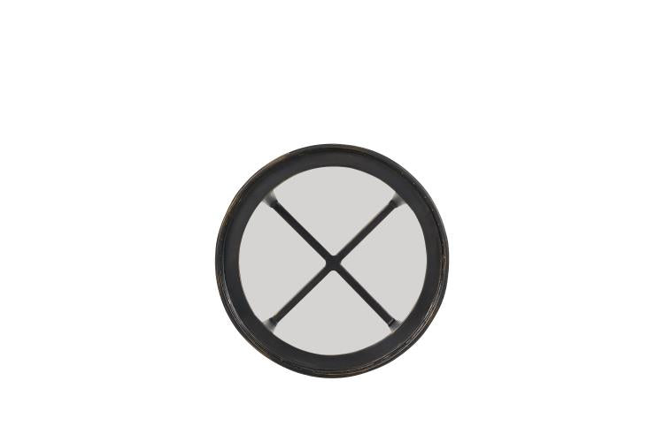 The Logan Round Drink Table features an oil-rubbed bronze metal frame with a clear beveled glass top, offering a sleek and sophisticated accent for any space. Perfect for holding drinks or décor with style.
