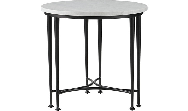 Finish: Honed Carrara Mable top, Blackened Bronze base